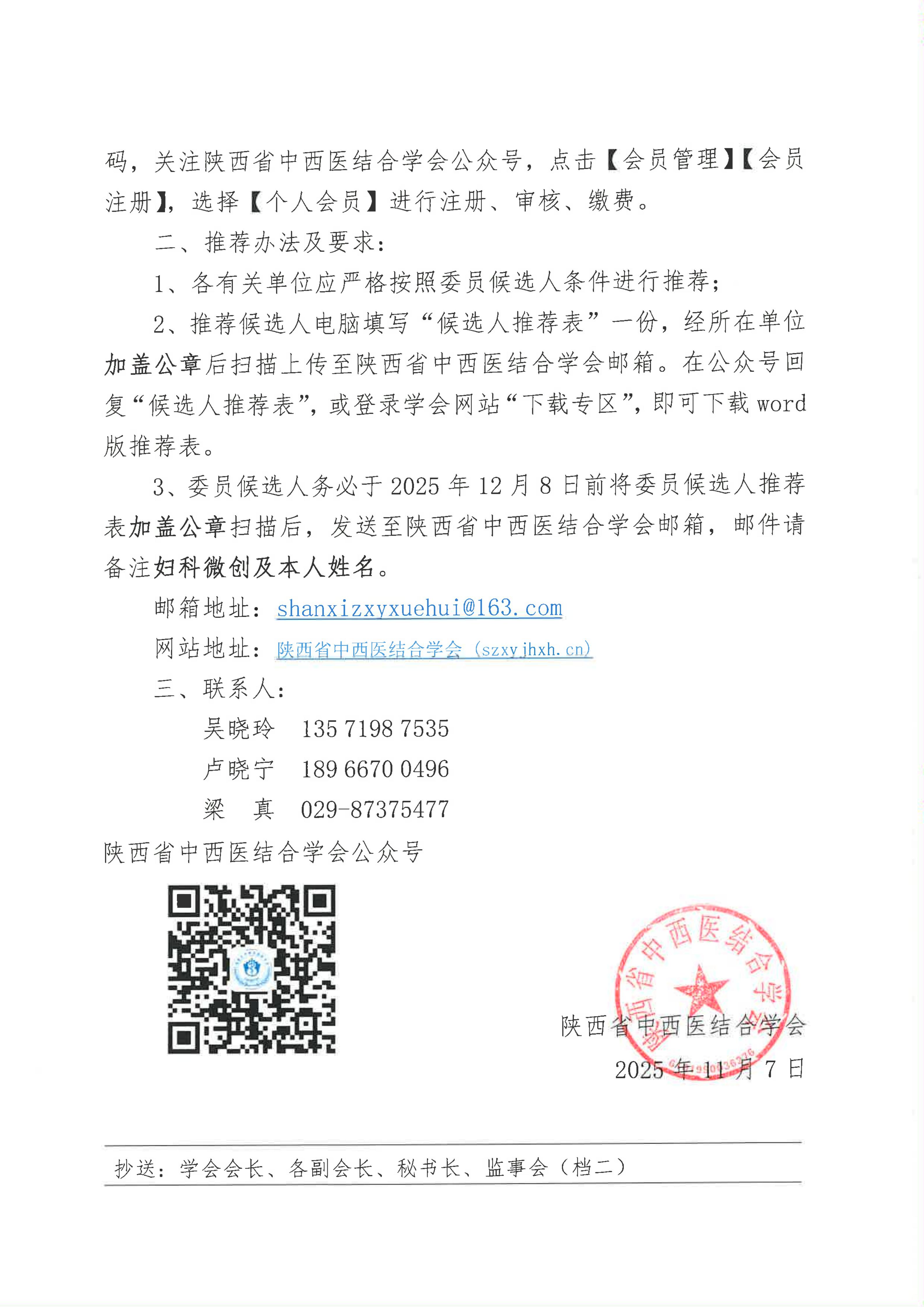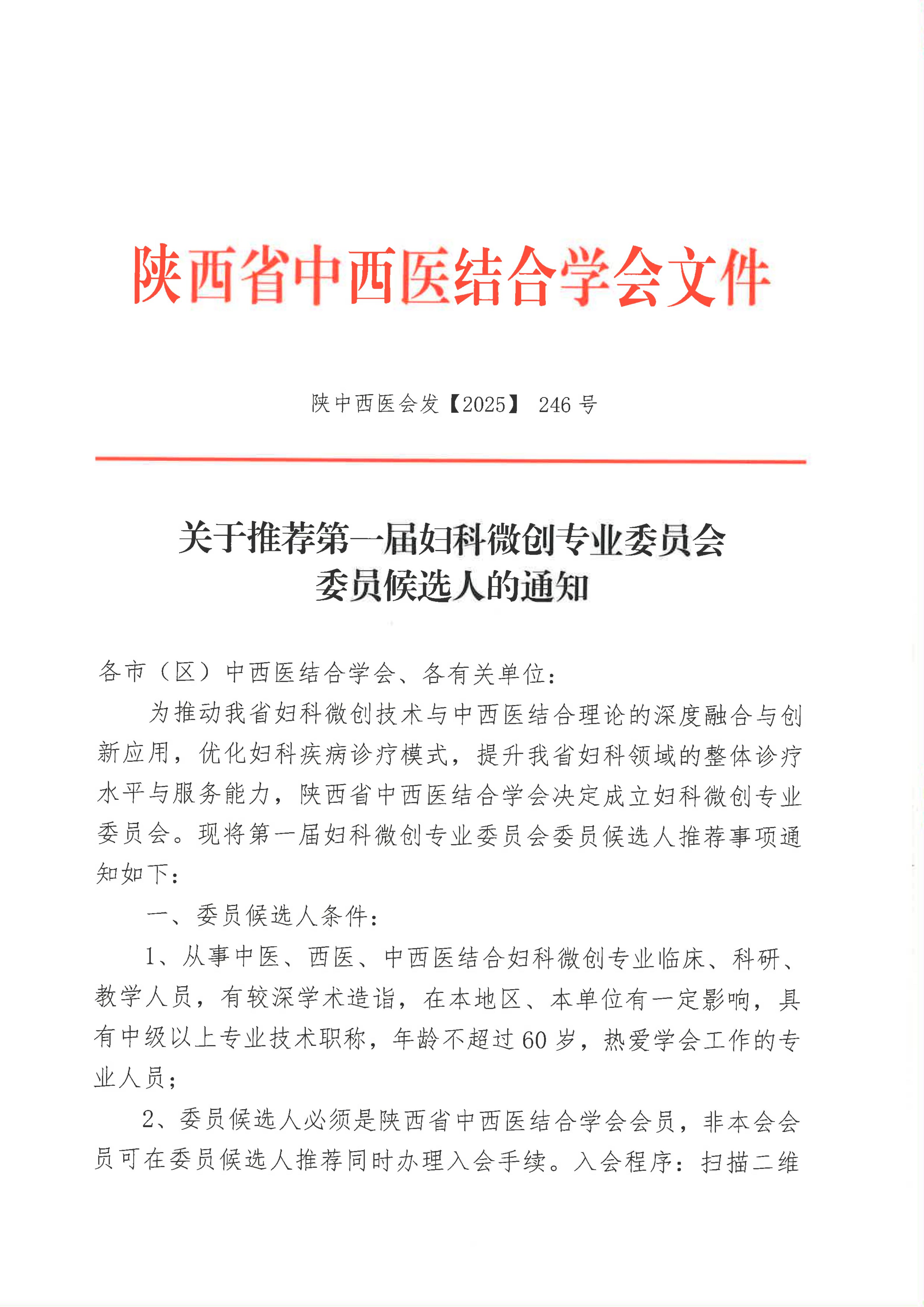 关于推荐第一届妇科微创专业委员会委员候选人的通知