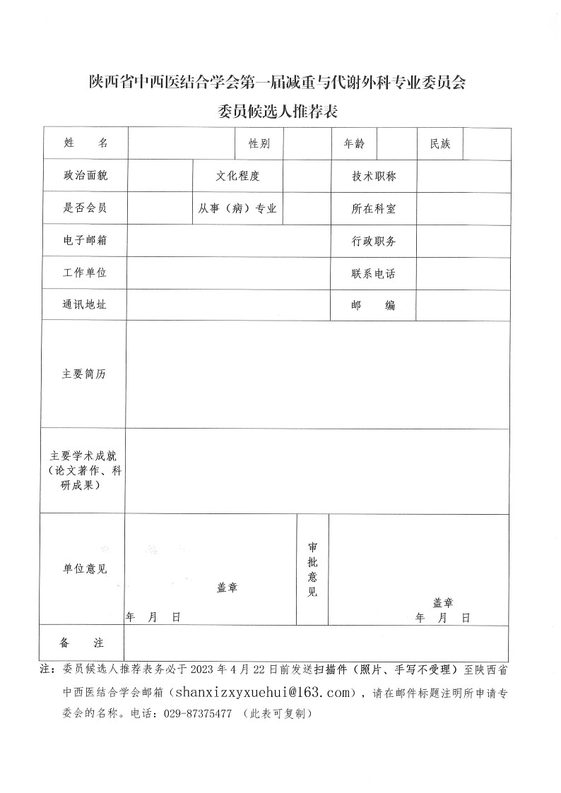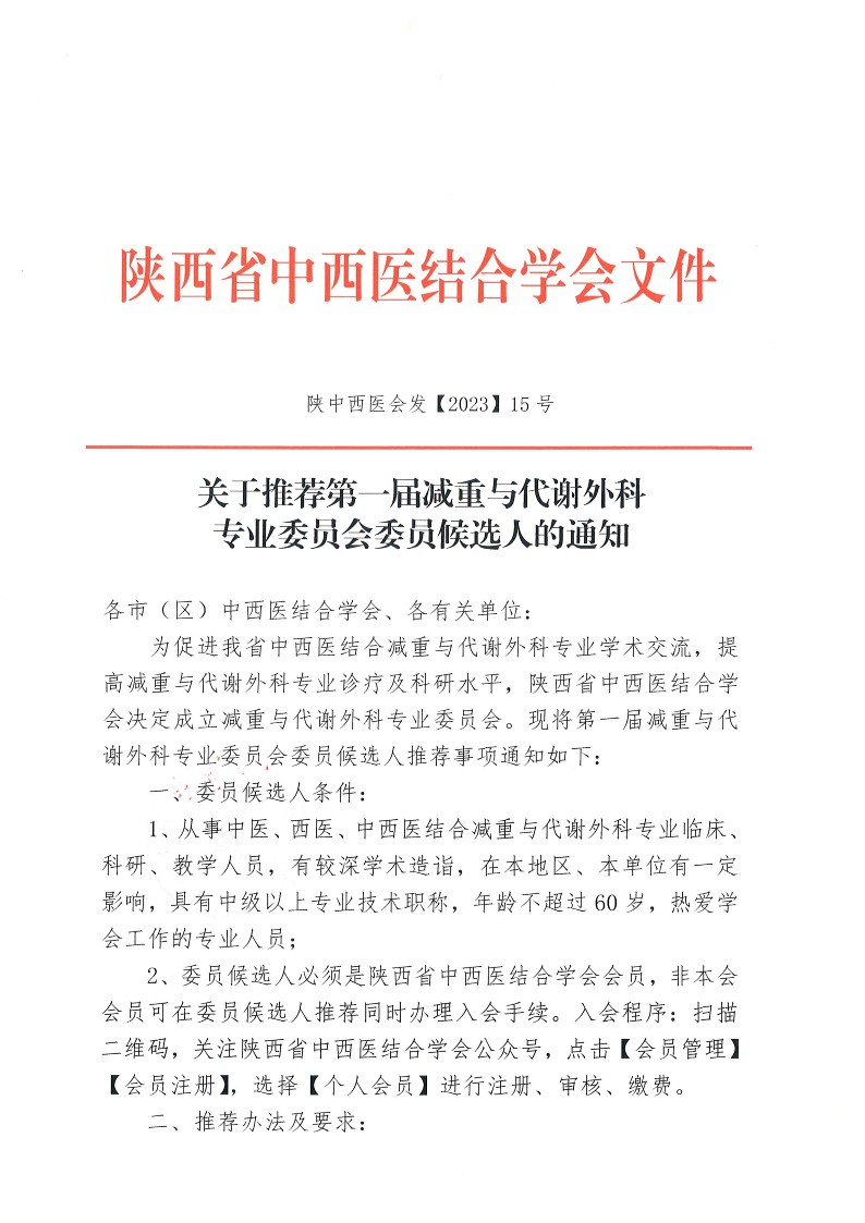 关于推荐第一届减重与代谢外科专委会委员候选人的通知