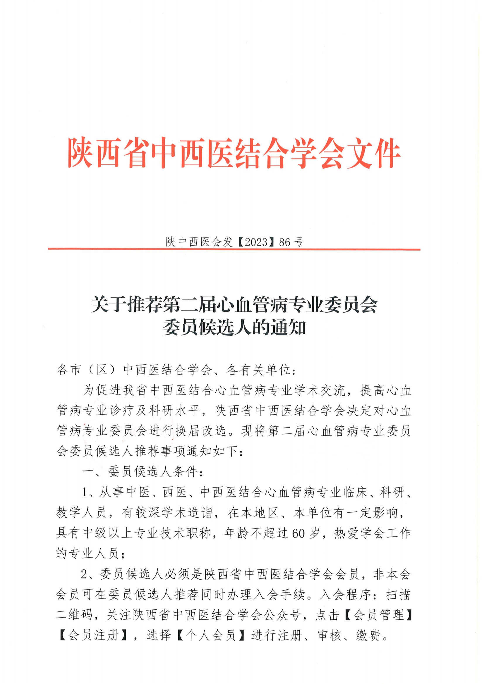 关于推荐第二届心血管病专业委员会委员候选人的通知