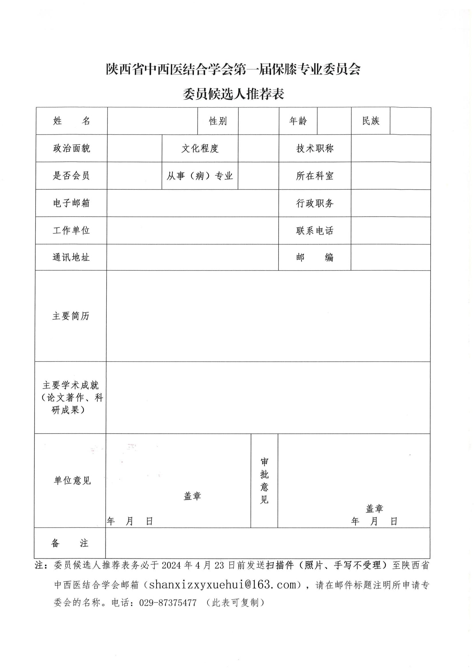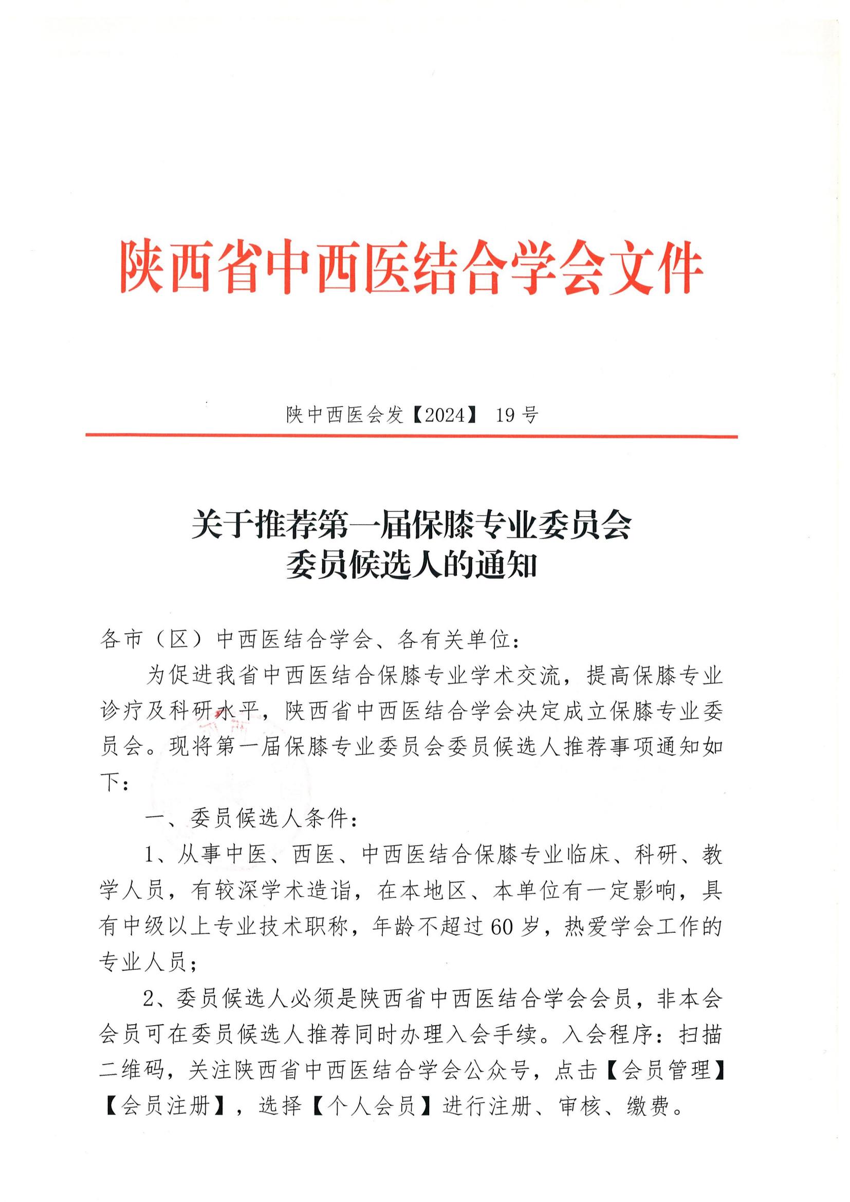 关于推荐第一届保膝专业委员会委员候选人的通知