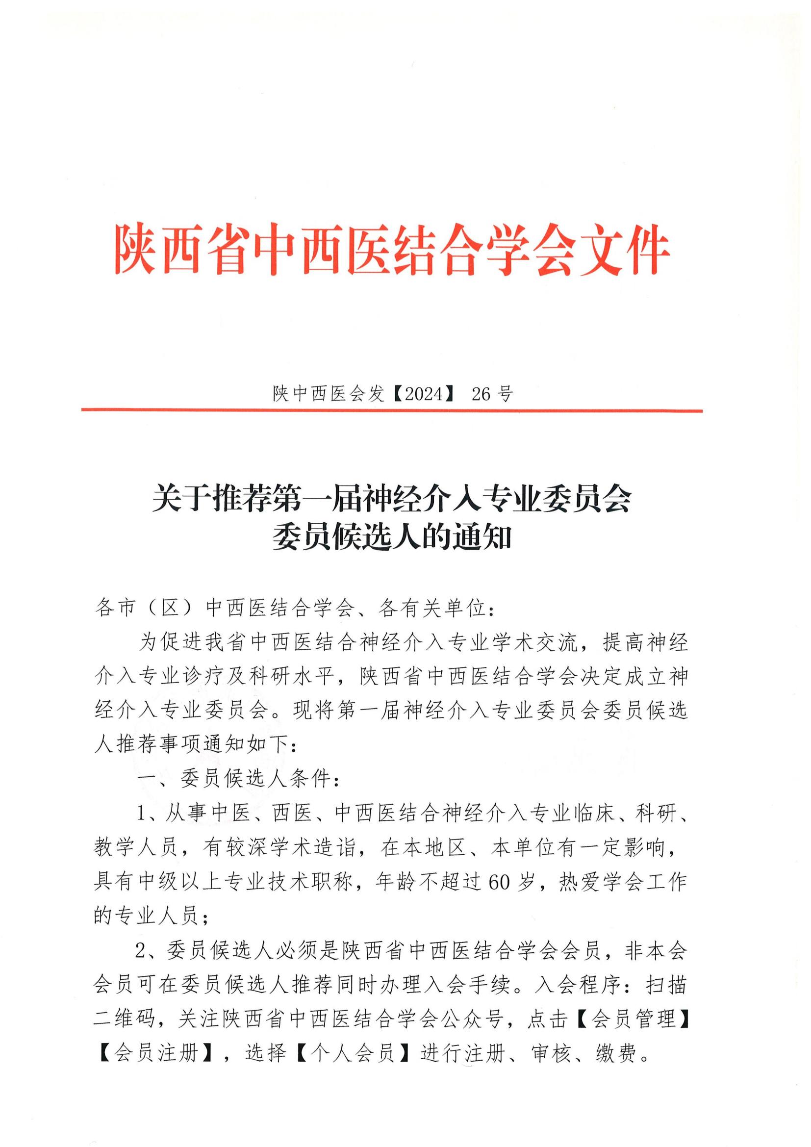 关于推荐第一届神经介入专业委员会委员候选人的通知