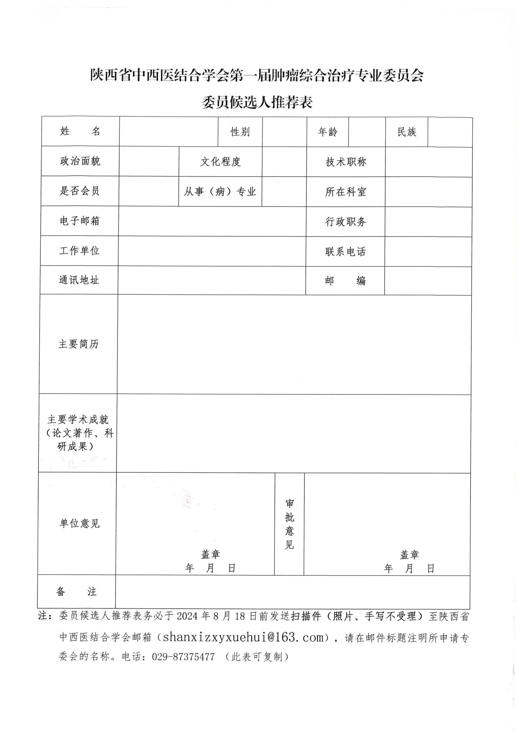关于推荐第一届肿瘤综合治疗专业委员会委员候选人的通知