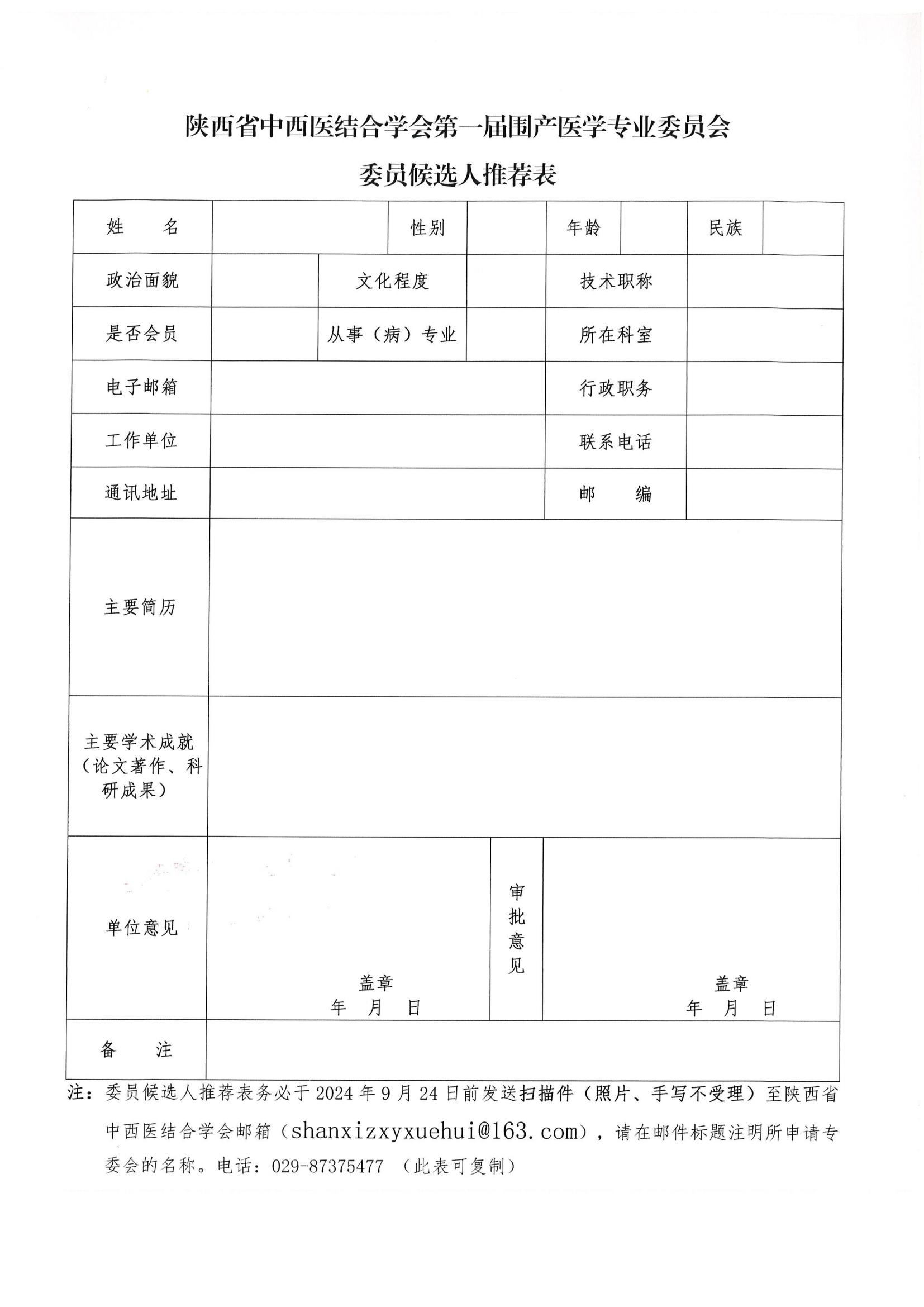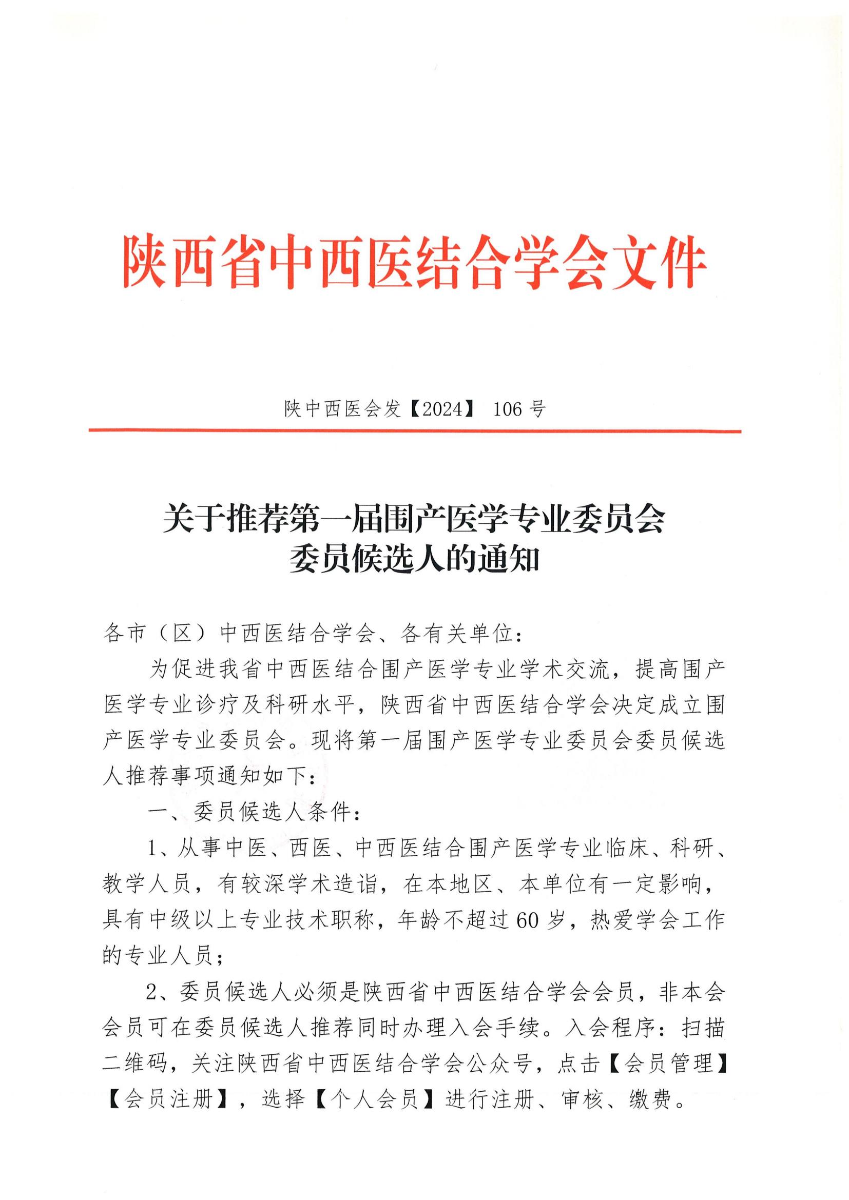 关于推荐第一届围产医学专业委员会委员候选人的通知