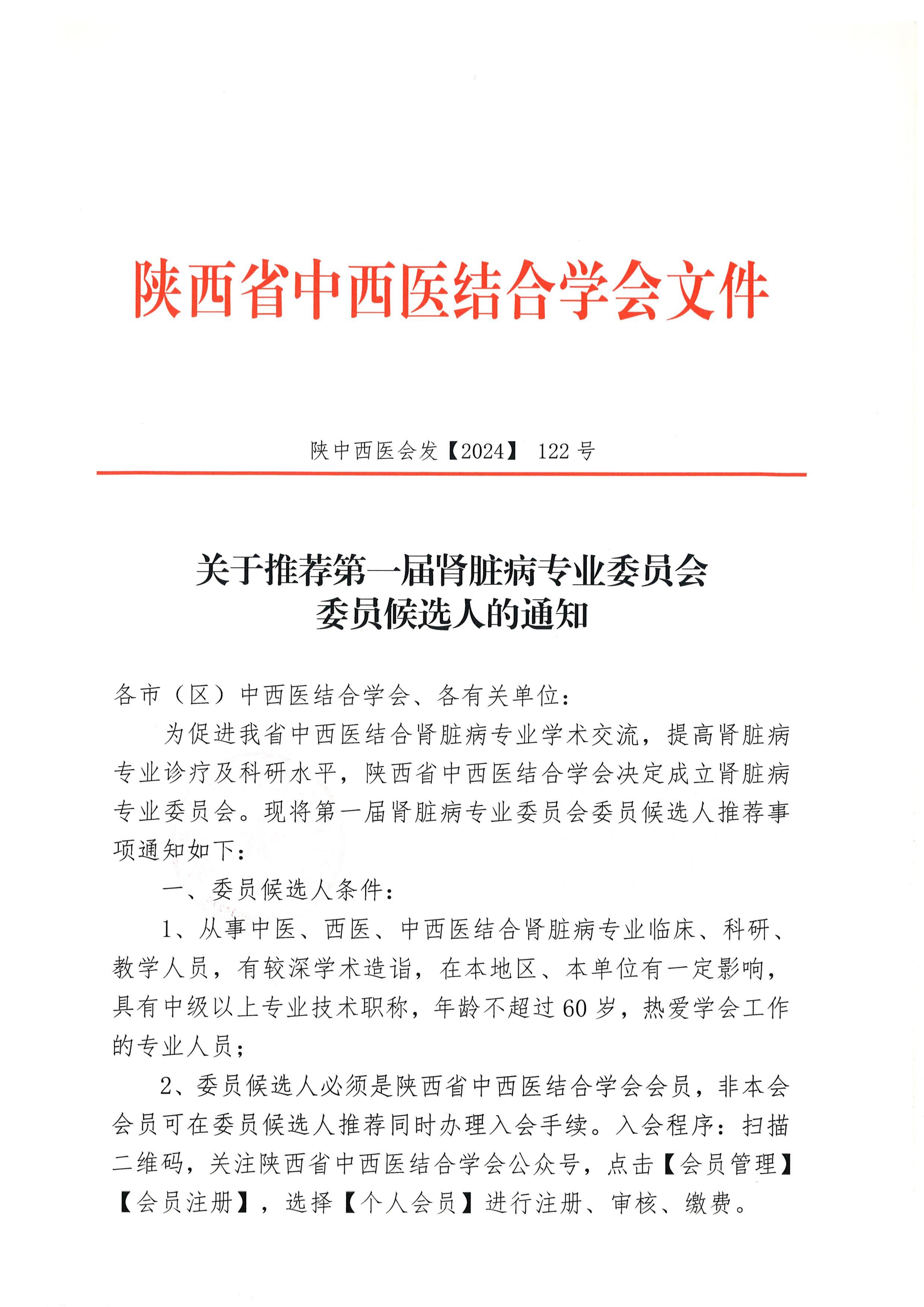 关于推荐第一届肾脏病专业委员会委员候选人的通知
