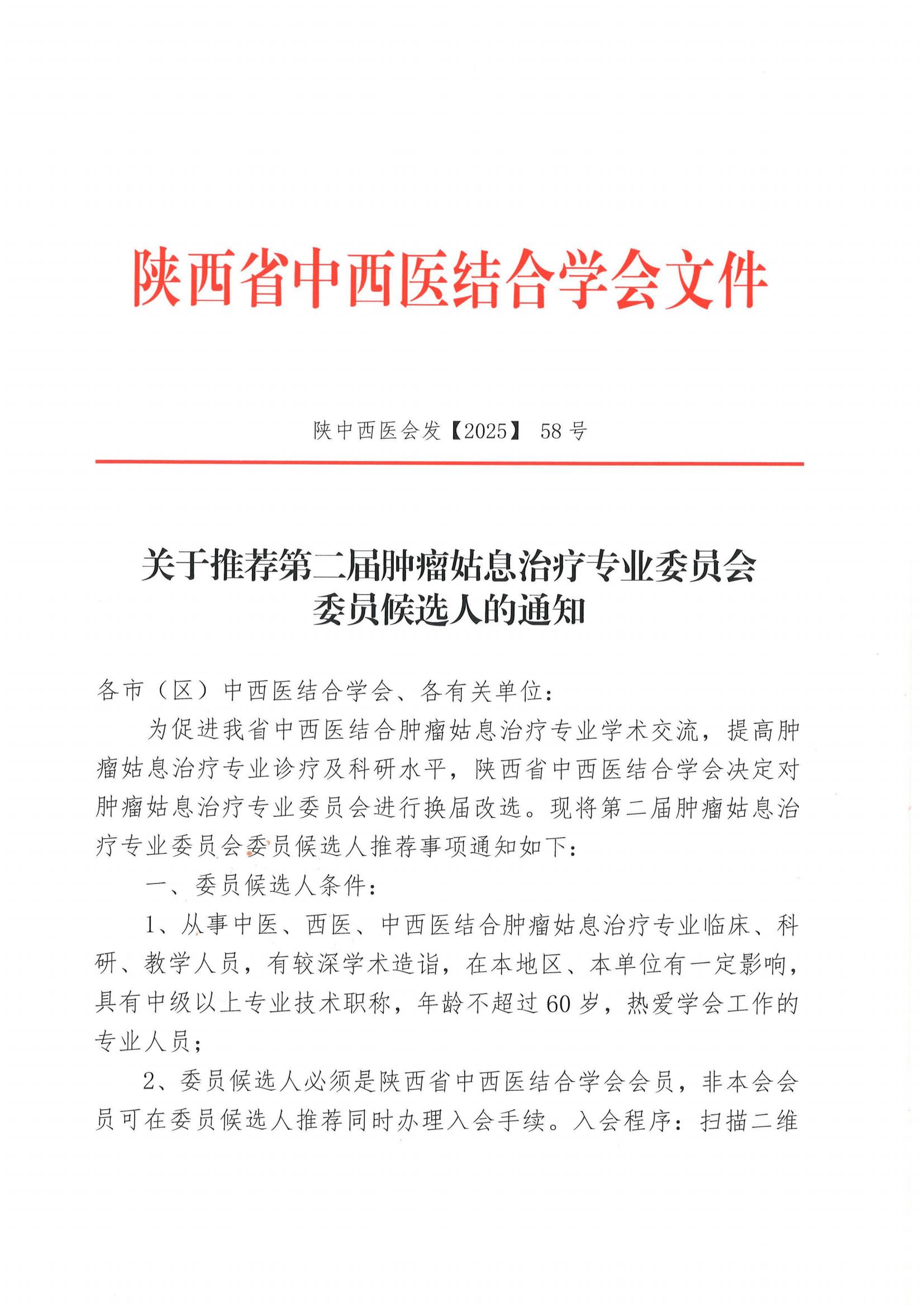 关于推荐第二届肿瘤姑息治疗专业委员会委员候选人的通知