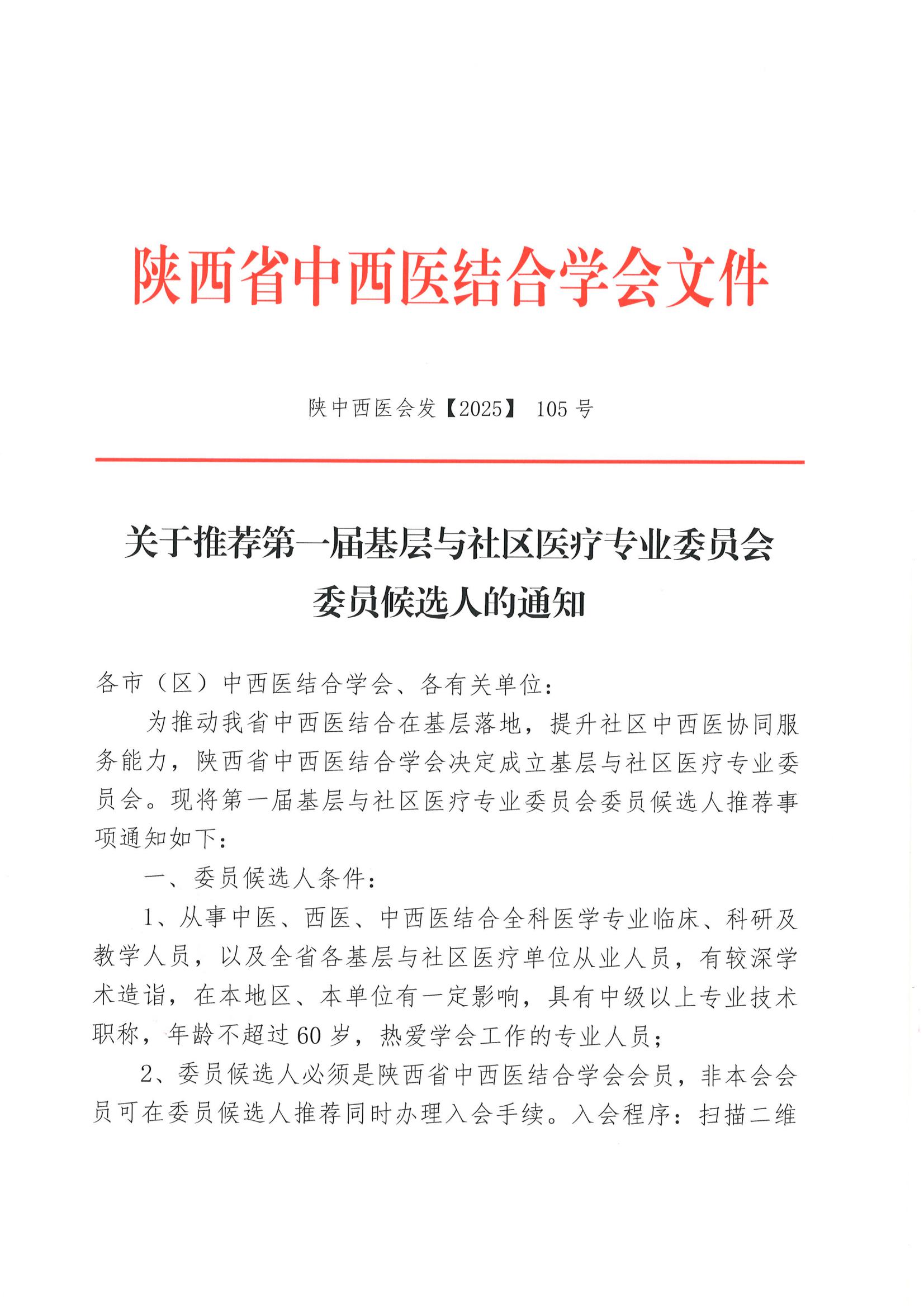 关于推荐第一届基层与社区医疗专业委员会委员候选人的通知