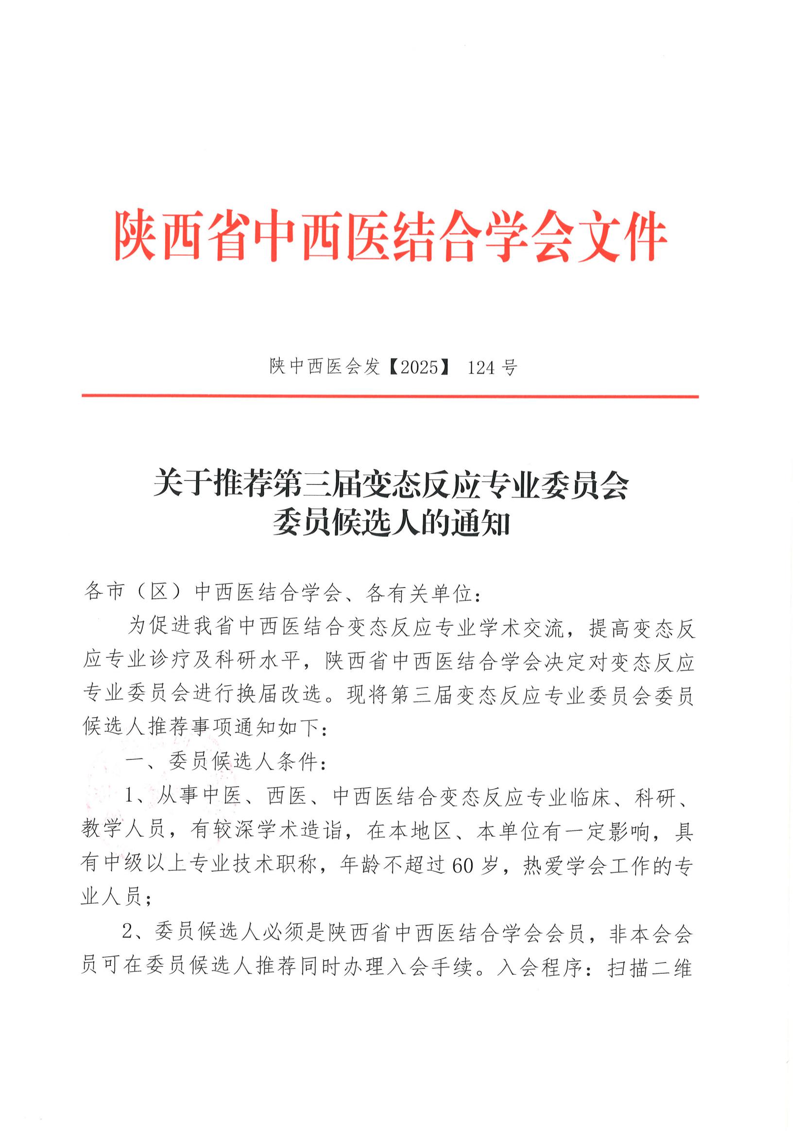 关于推荐第三届变态反应专业委员会委员候选人的通知