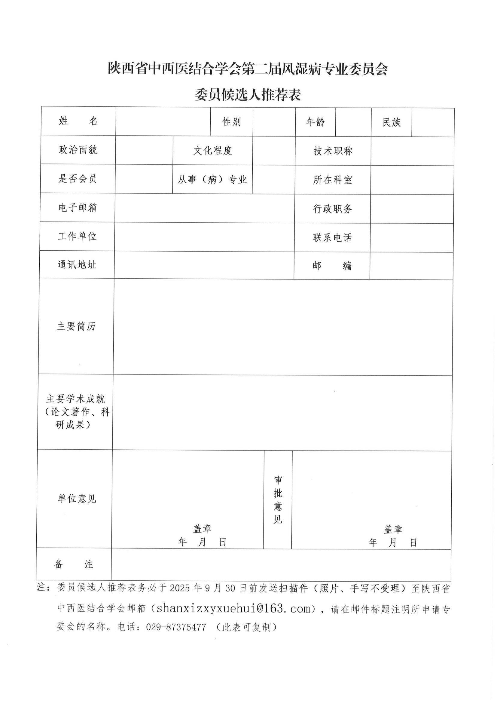 关于推荐第二届风湿病专业委员会委员候选人的通知