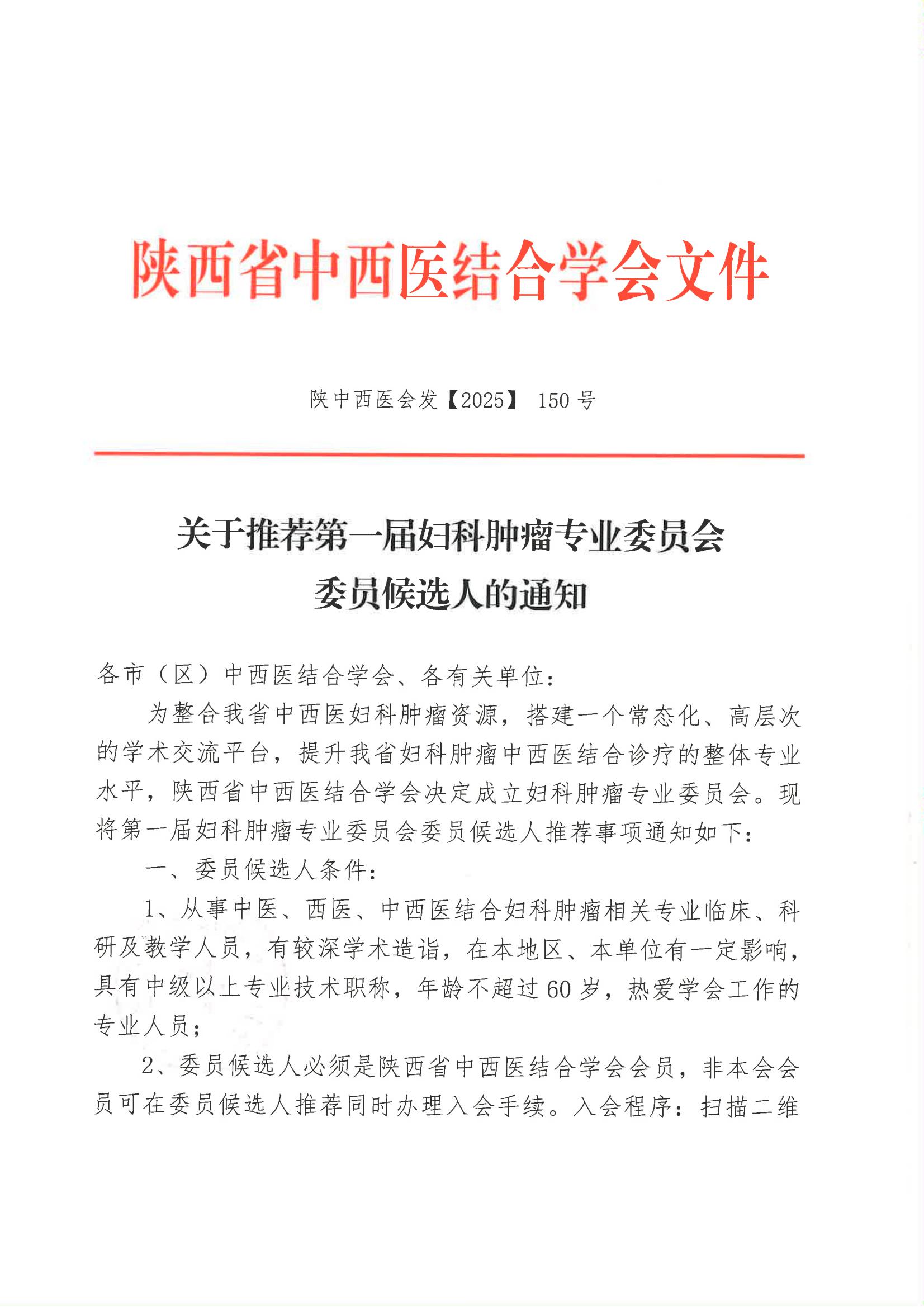 关于推荐第一届妇科肿瘤专业委员会委员候选人的通知