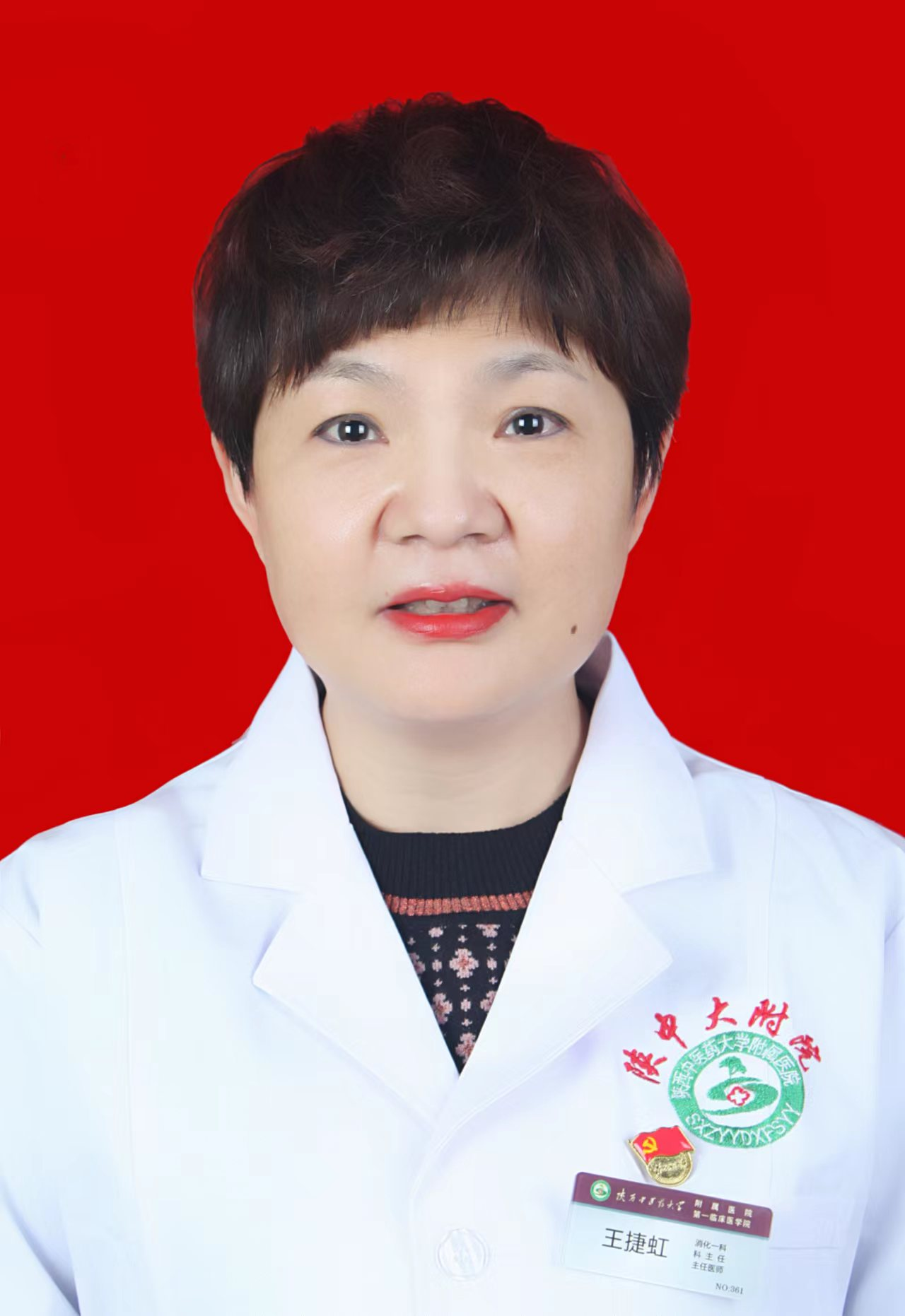 王捷虹,女,54岁,硕士研究生,教授、主任医师,陕西省名中医,陕西中医药大学附属医院消化一科主任,硕士研究生导师。现任国家脾胃区域诊疗中心负责人,中华中医药学会脾胃病分会常务委员,世中联消化病专业委员会常务理事,中国民族医药学会脾胃病学会副会长。