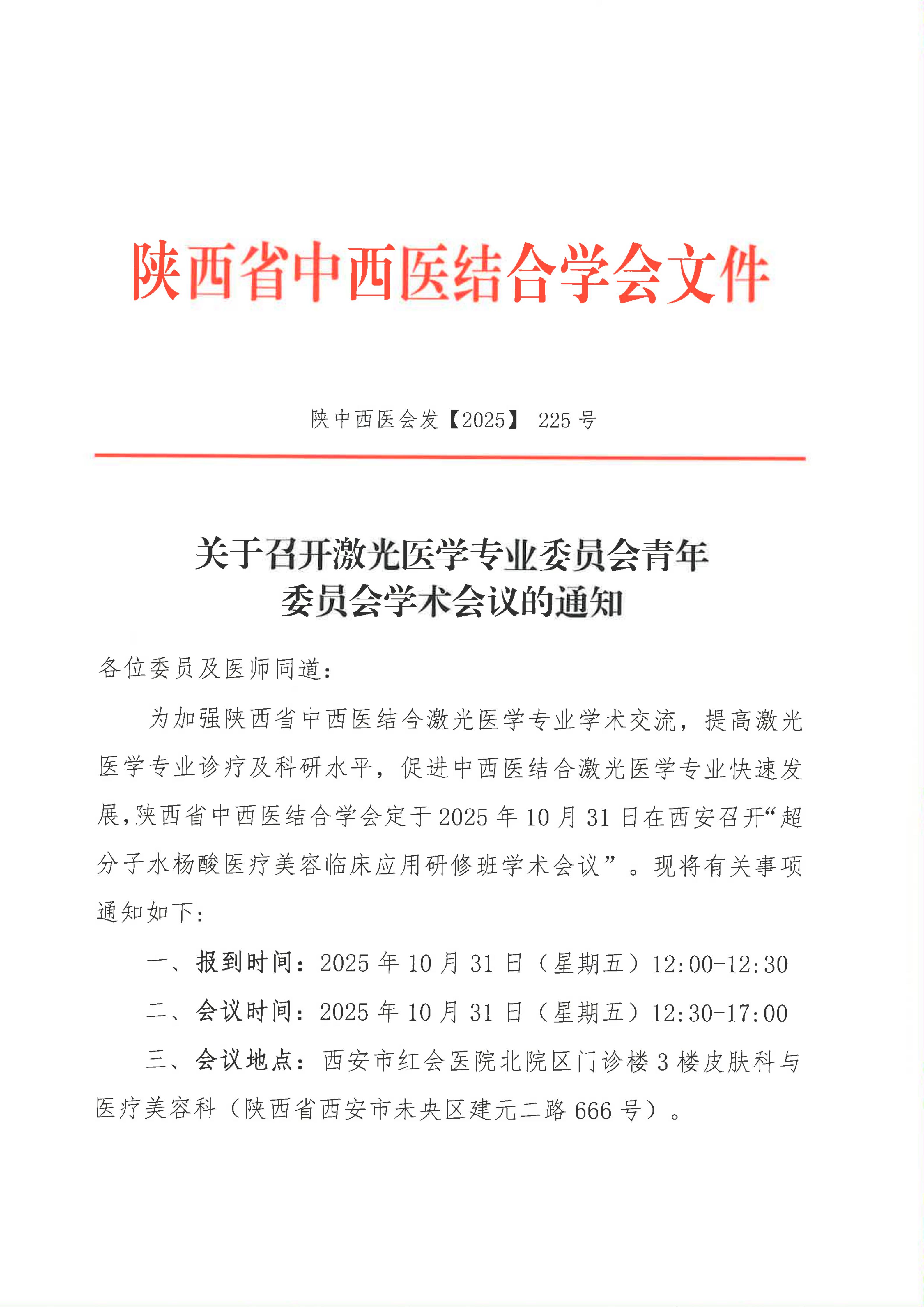 关于召开激光医学专业委员会青年委员会学术会议的通知