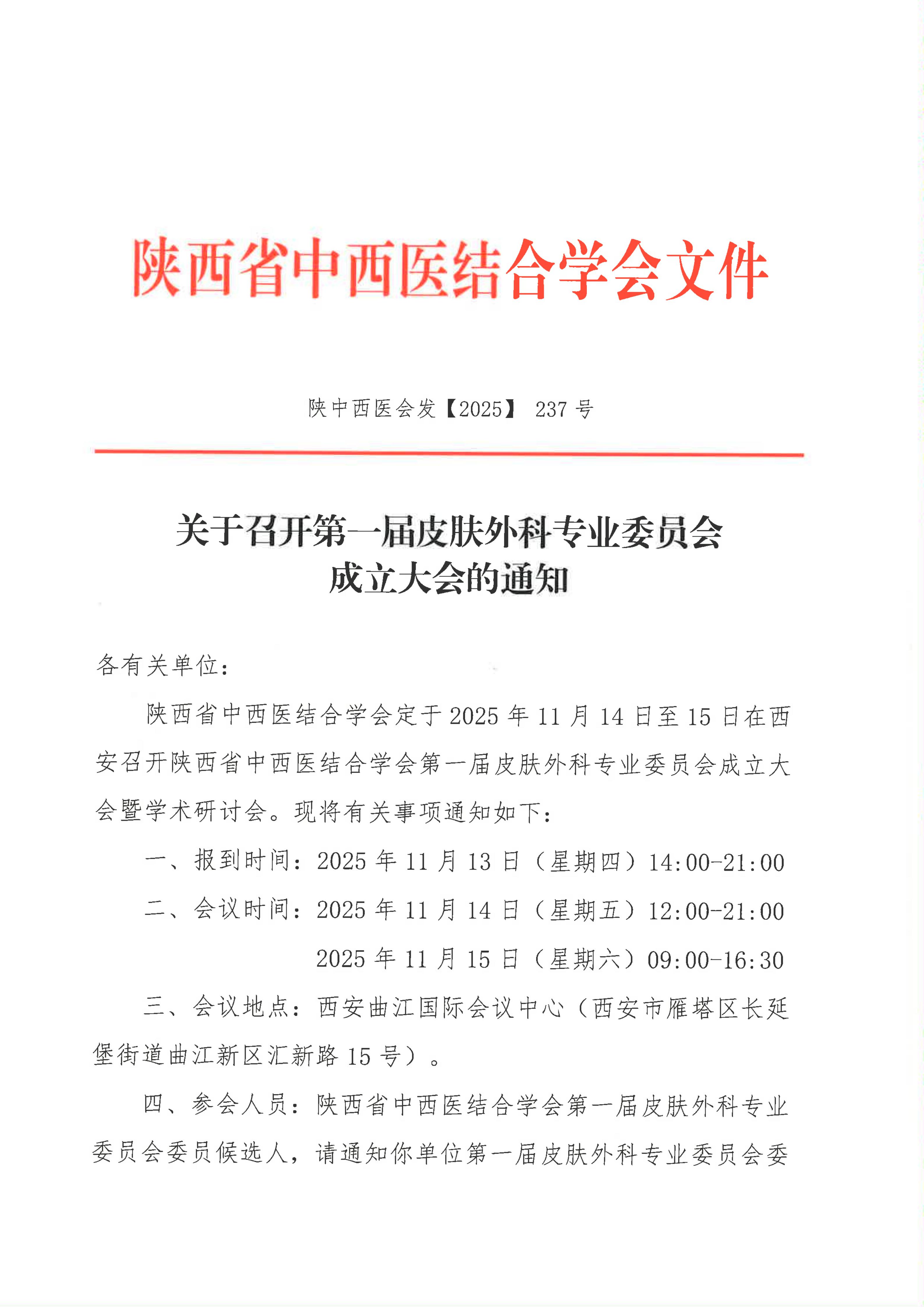 关于召开第一届皮肤外科专业委员会成立大会的通知