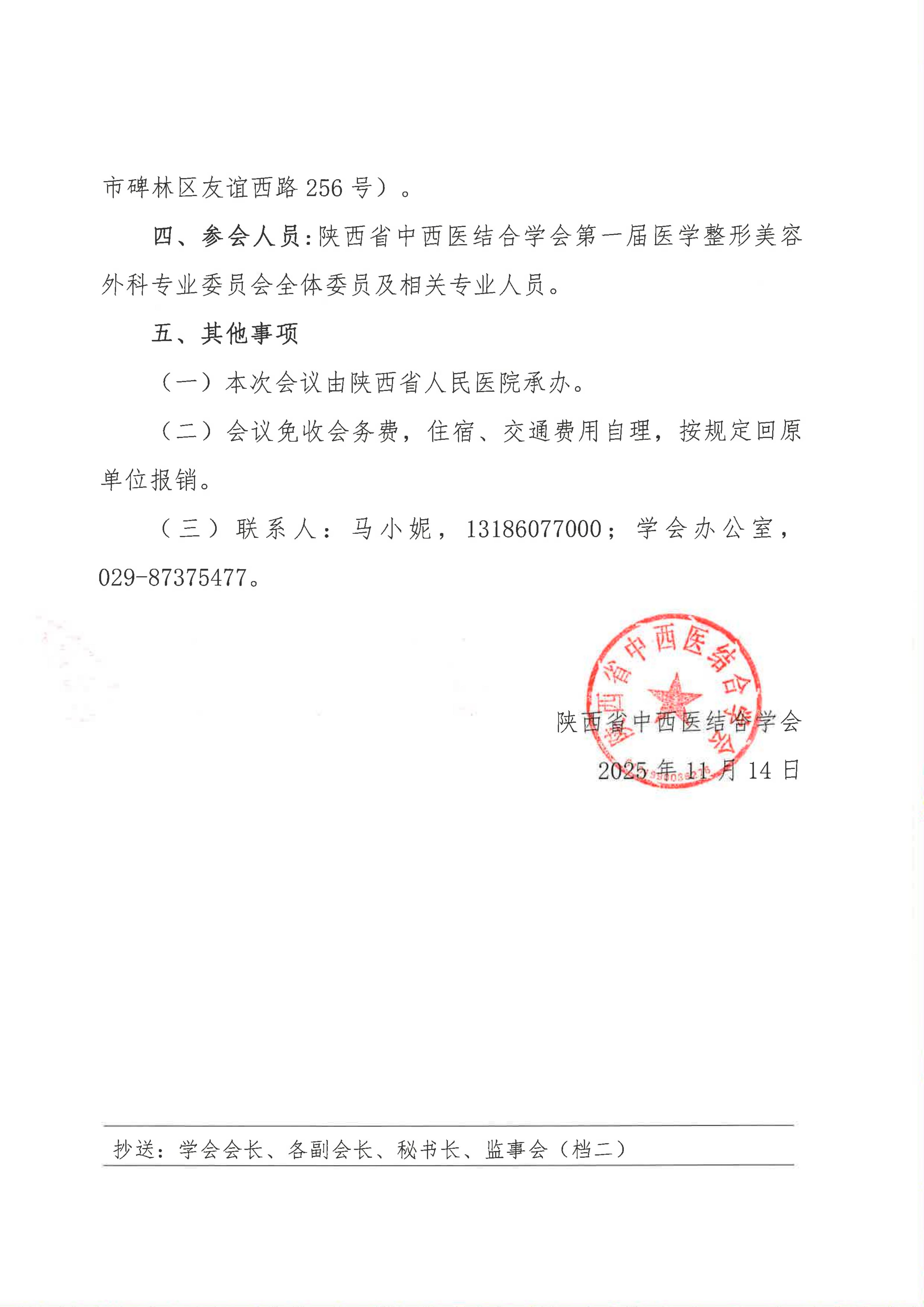 关于召开医学整形美容外科专业委员会学术会议的通知