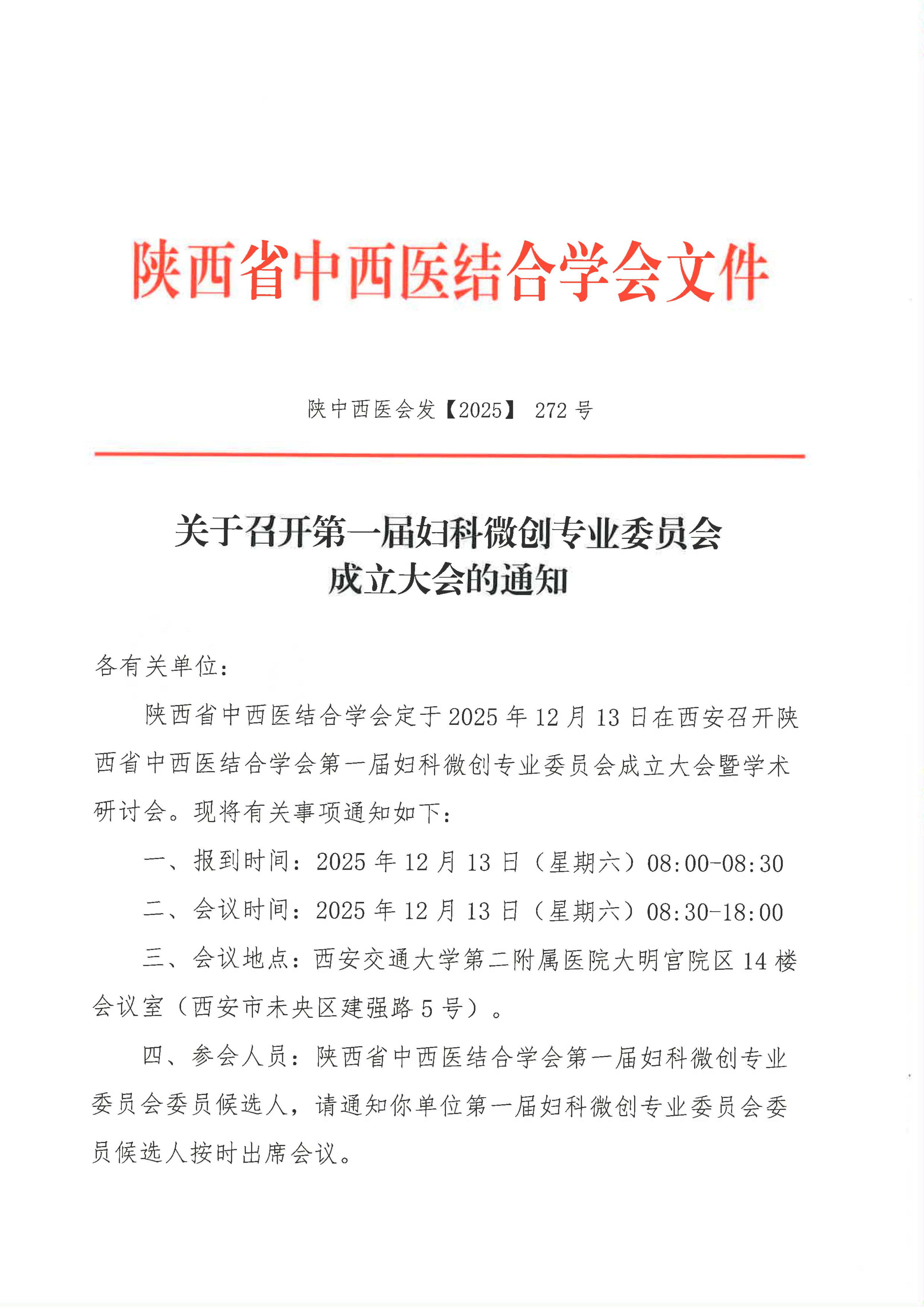 关于召开第一届妇科微创专业委员会成立大会的通知
