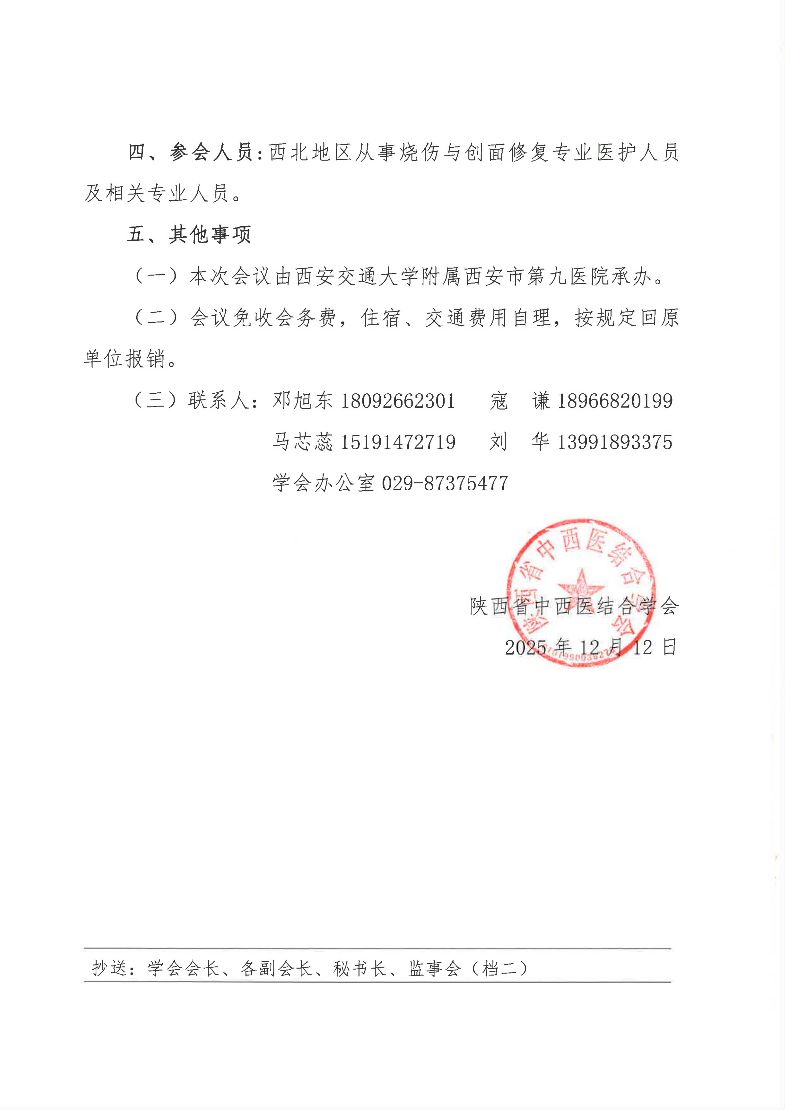 关于召开烧伤与创面修复专业委员会学术会议的通知