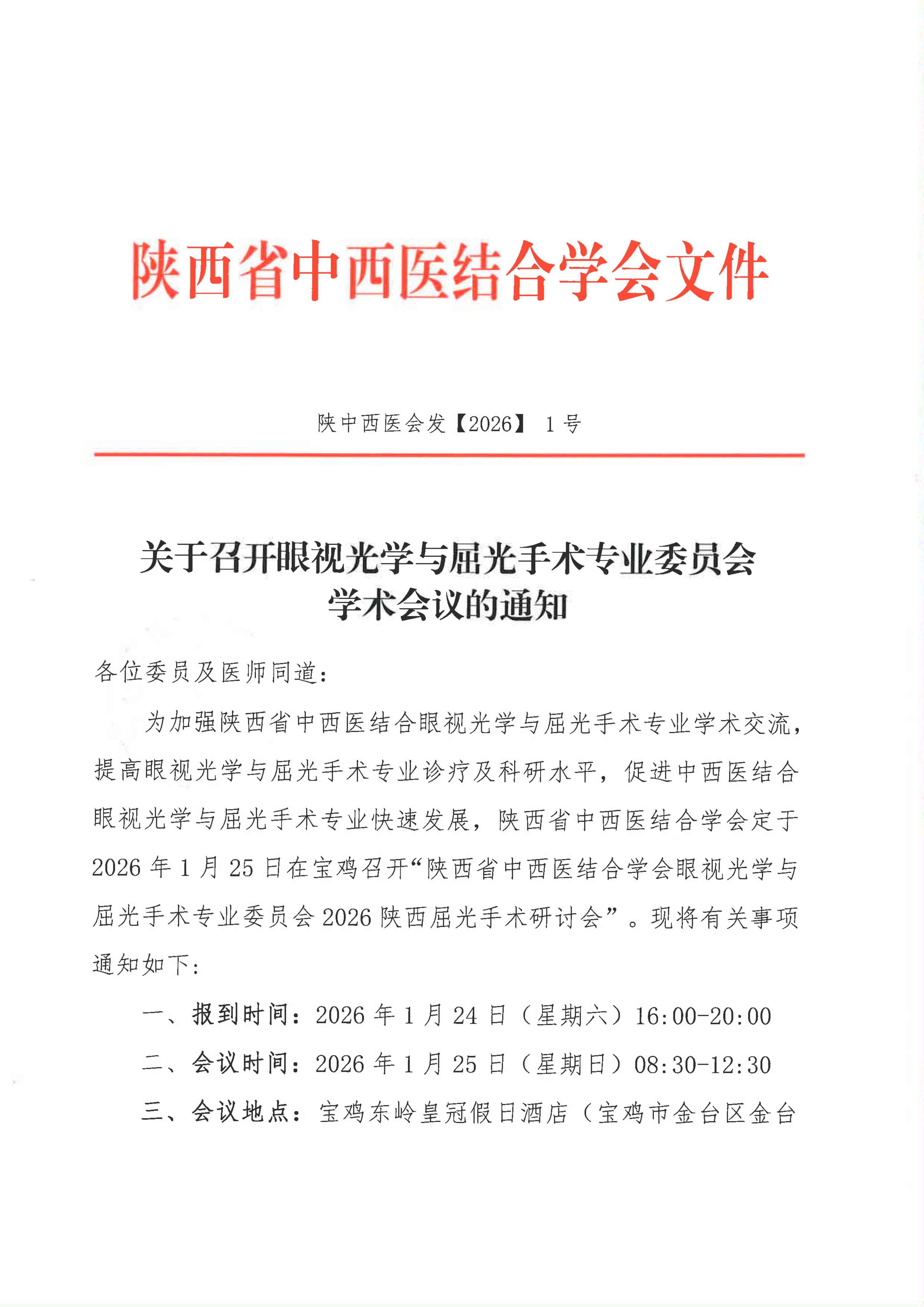 关于召开眼视光学与屈光手术专业委员会学术会议的通知