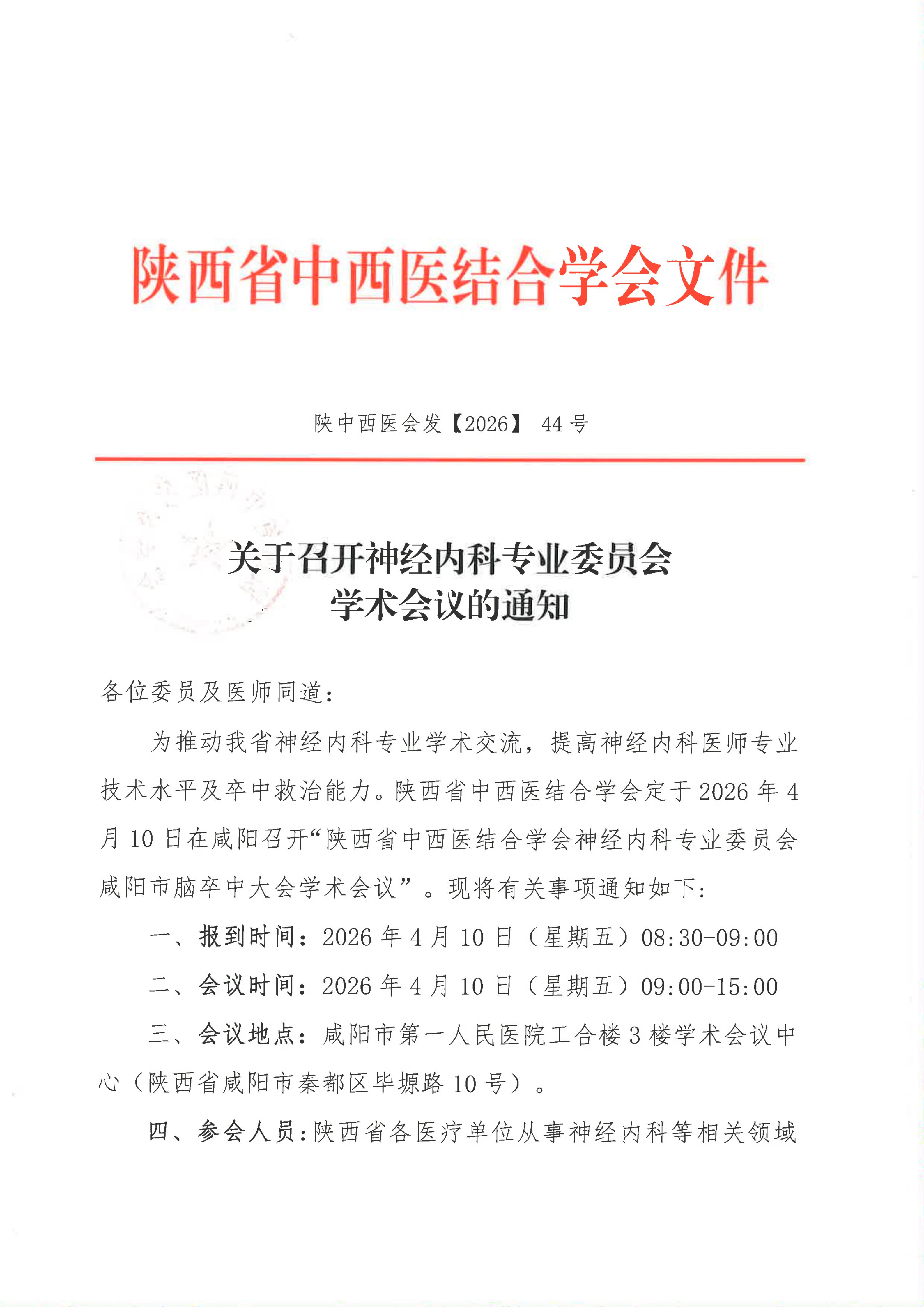 关于召开神经内科专业委员会学术会议的通知