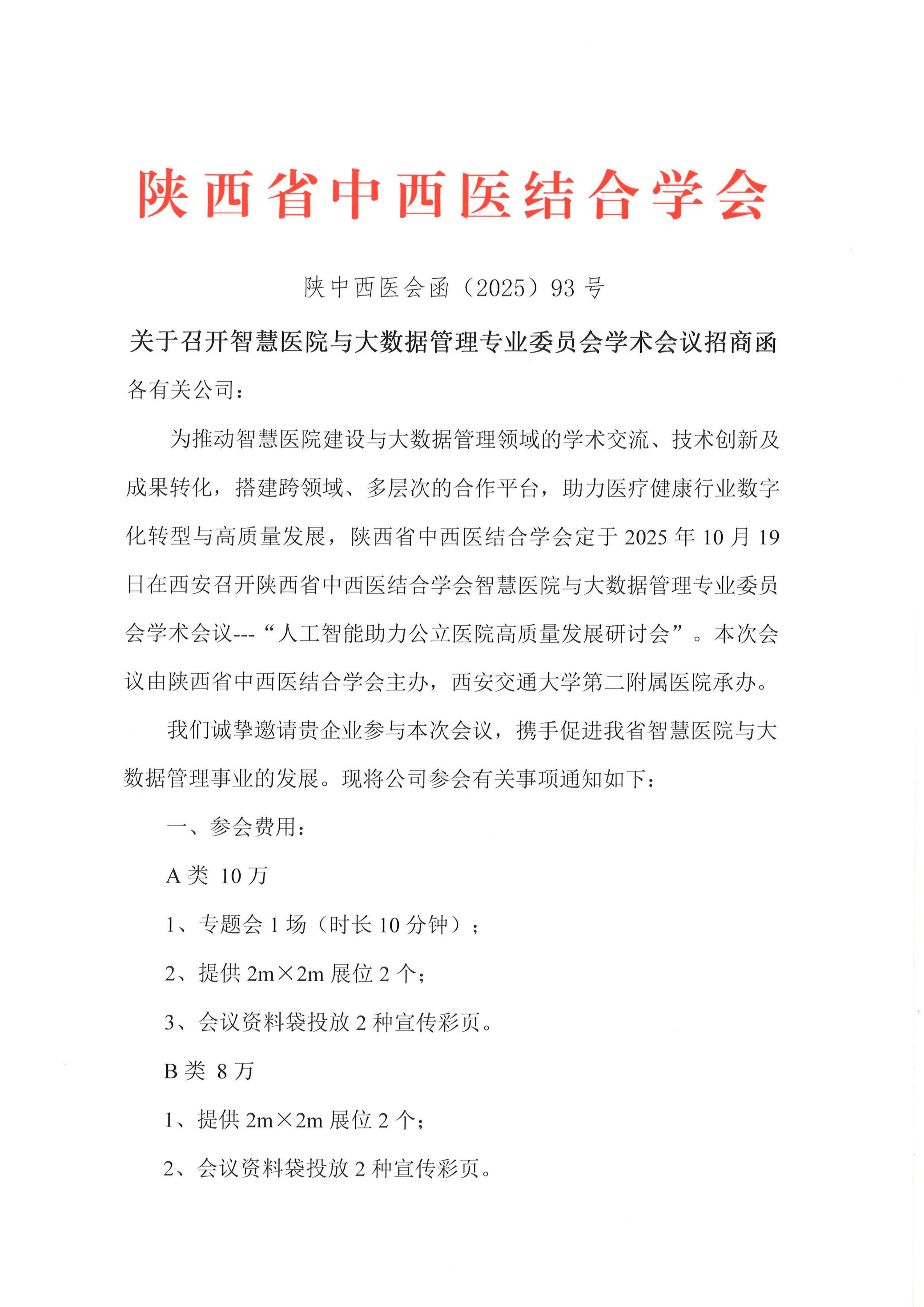 关于召开智慧医院与大数据管理专业委员会学术会议招商函
