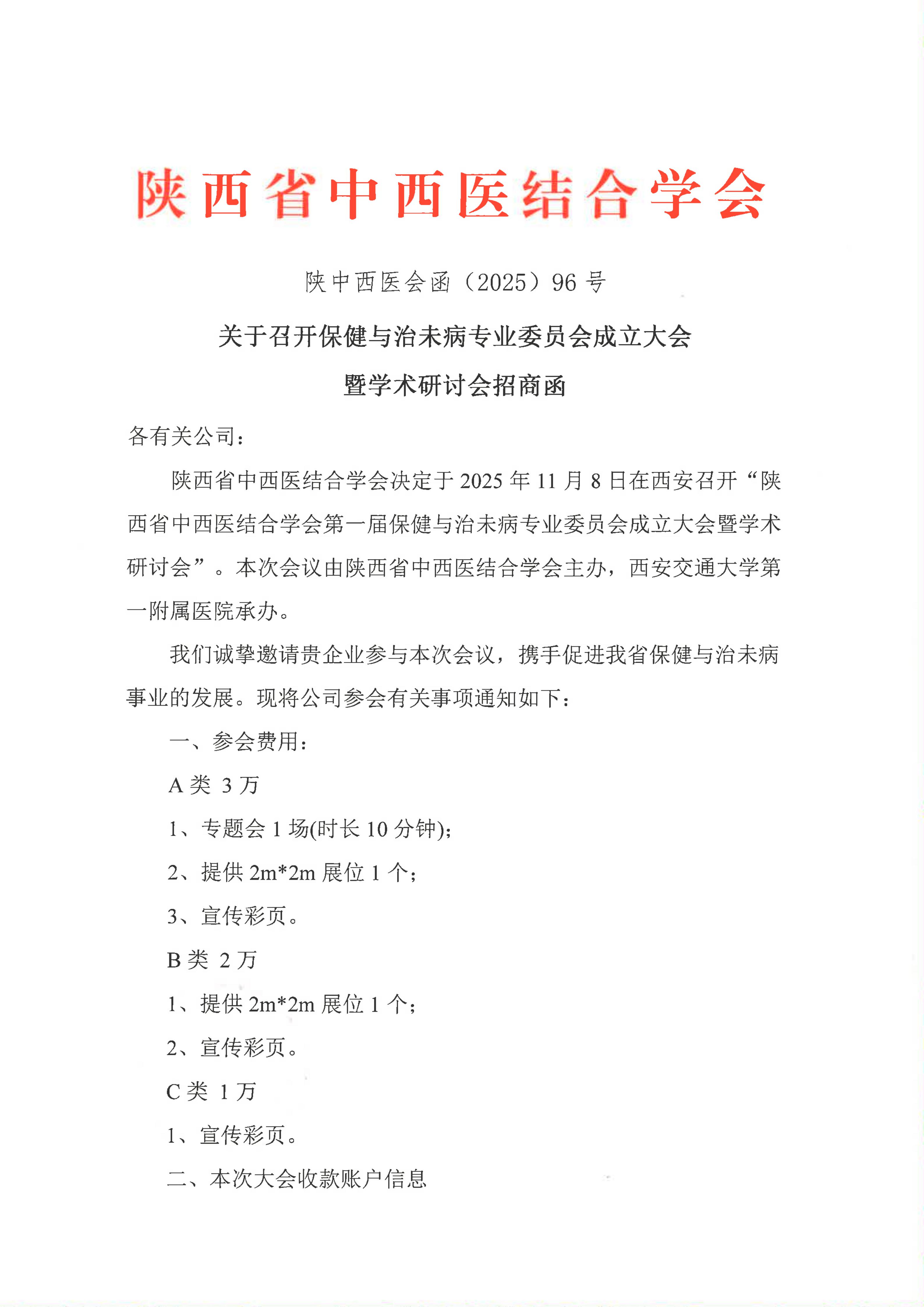 关于召开保健与治未病专业委员会成立大会暨学术研讨会招商函