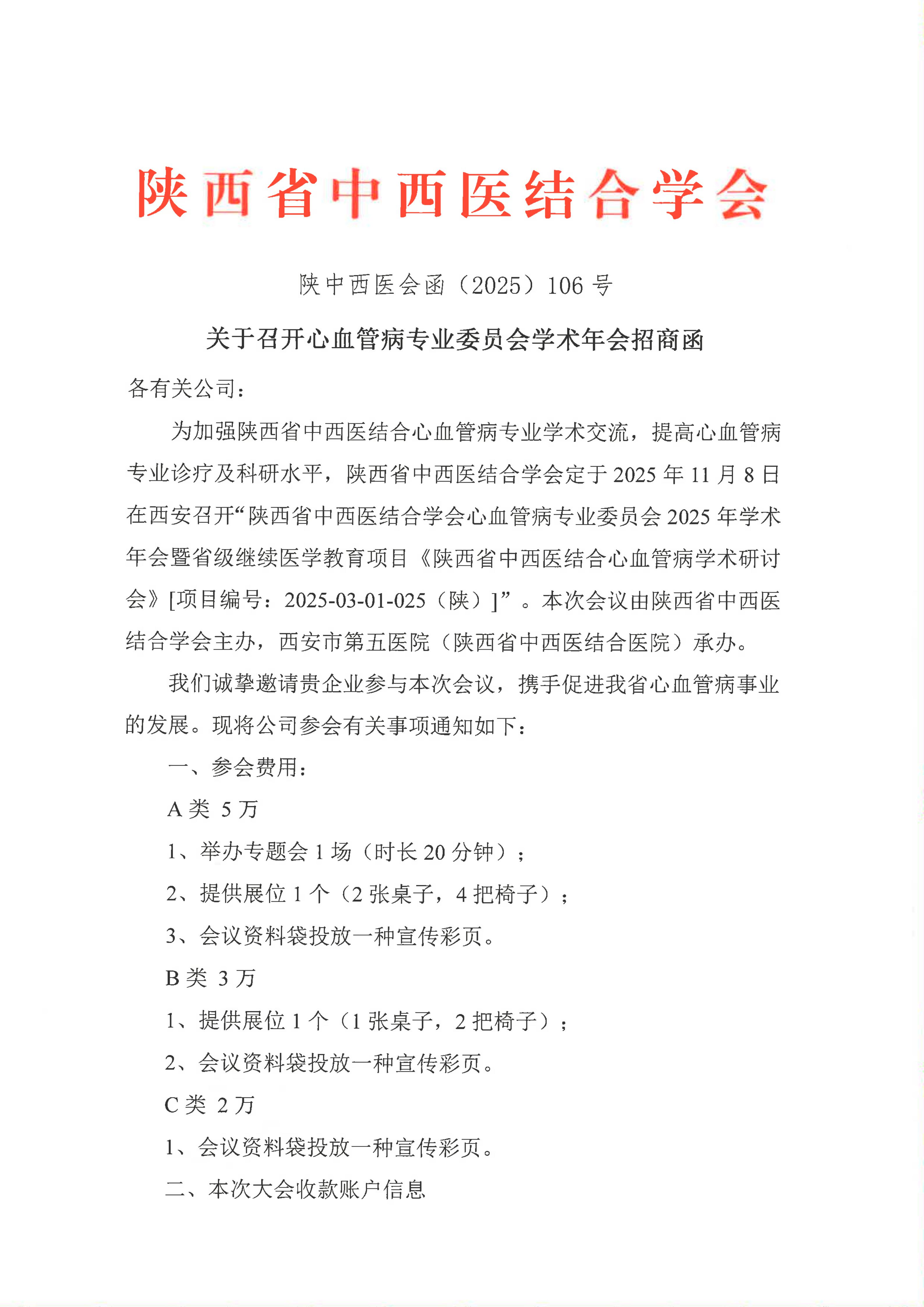 关于召开心血管病专业委员会学术年会招商函