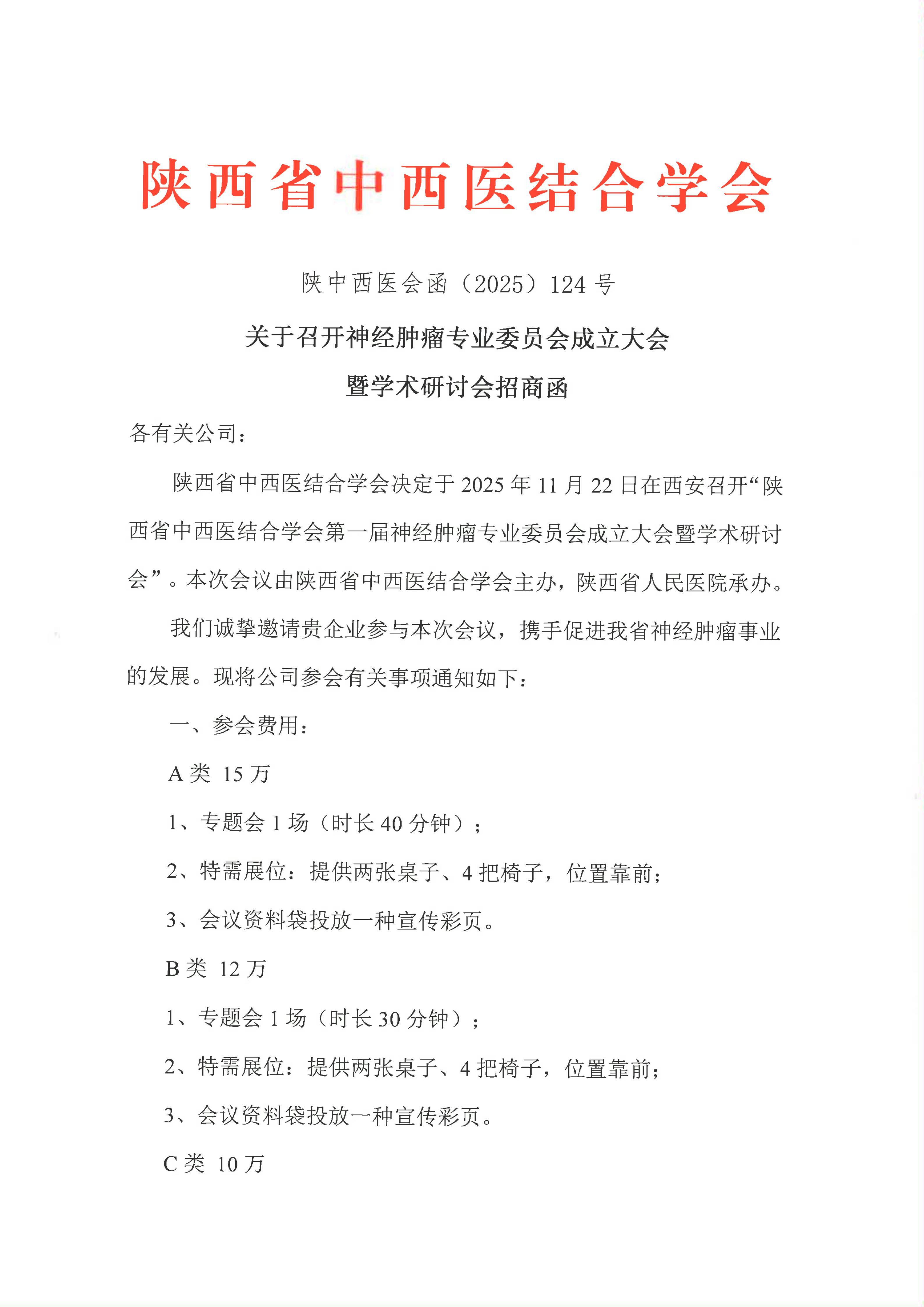 关于召开神经肿瘤专业委员会成立大会暨学术研讨会招商函