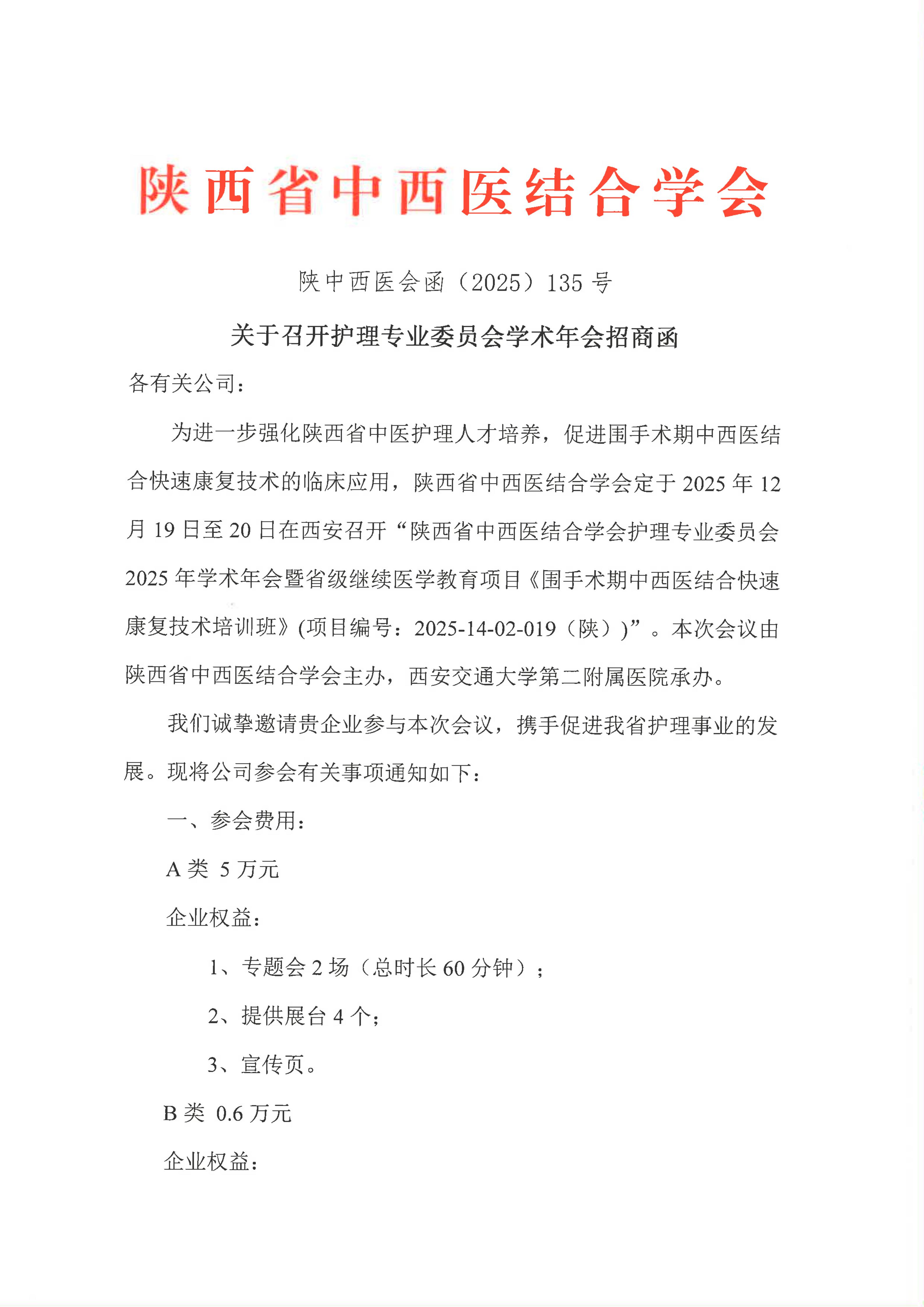 关于召开护理专业委员会学术年会招商函