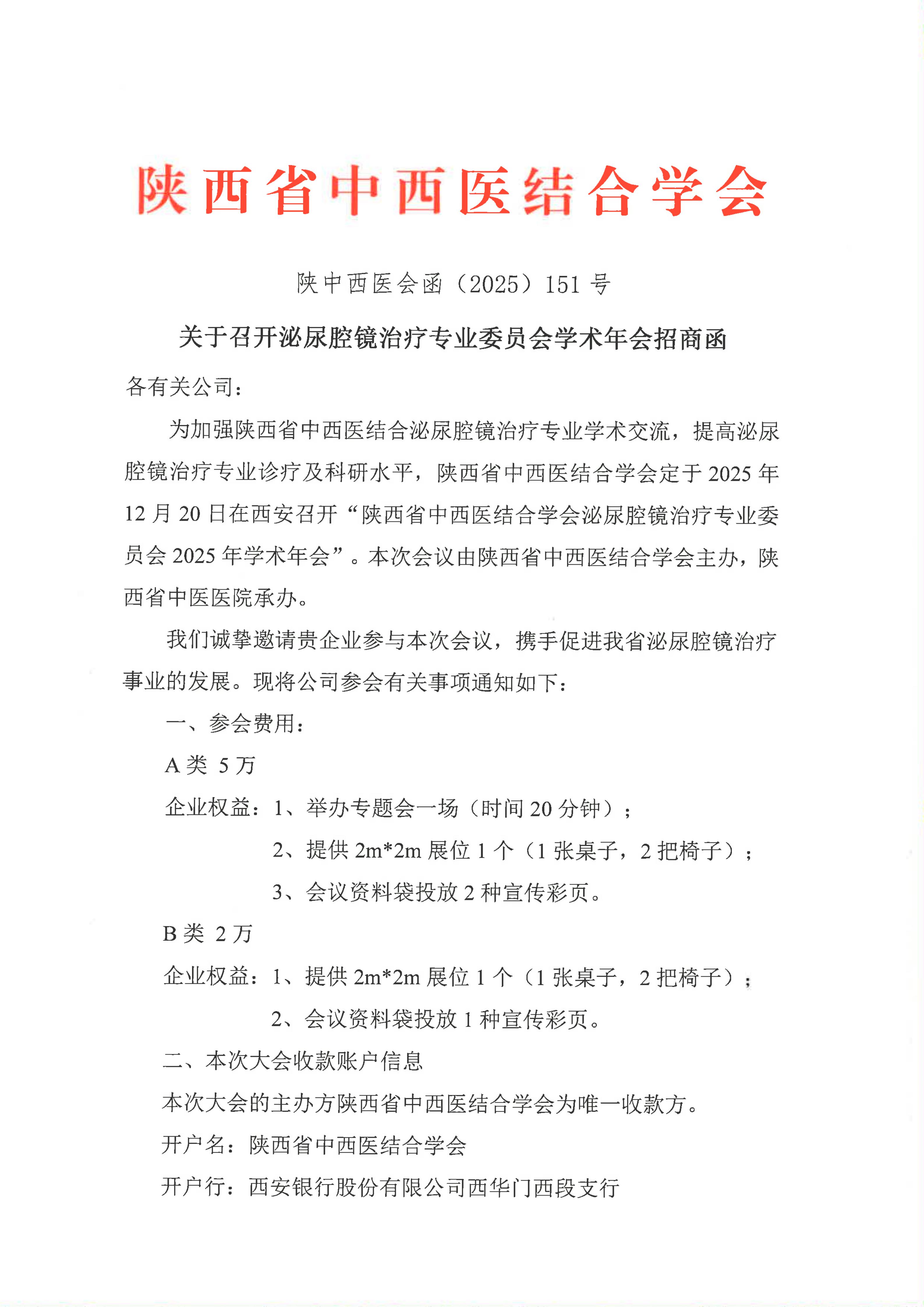 关于召开泌尿腔镜治疗专业委员会学术年会招商函