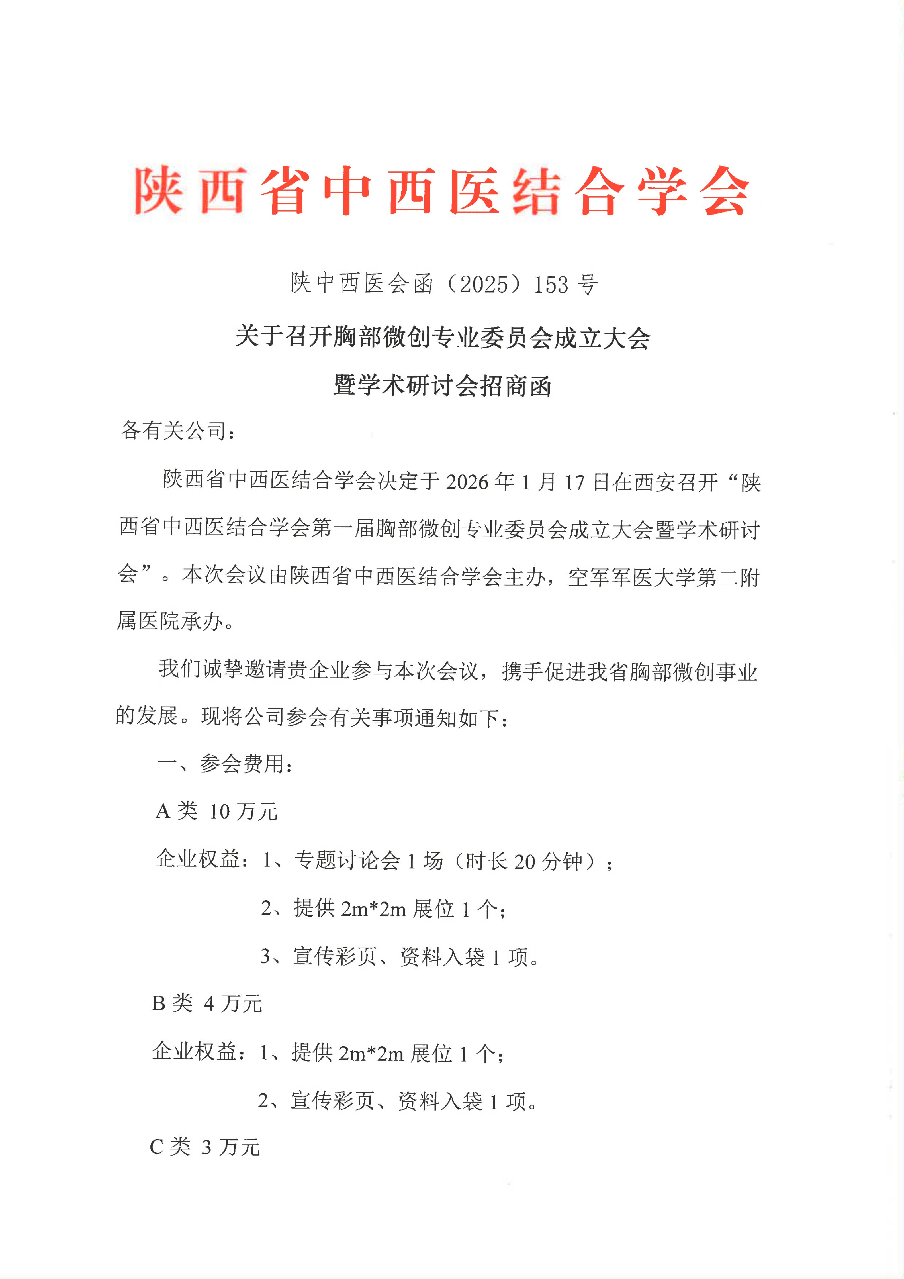 关于召开胸部微创专业委员会成立大会暨学术研讨会招商函