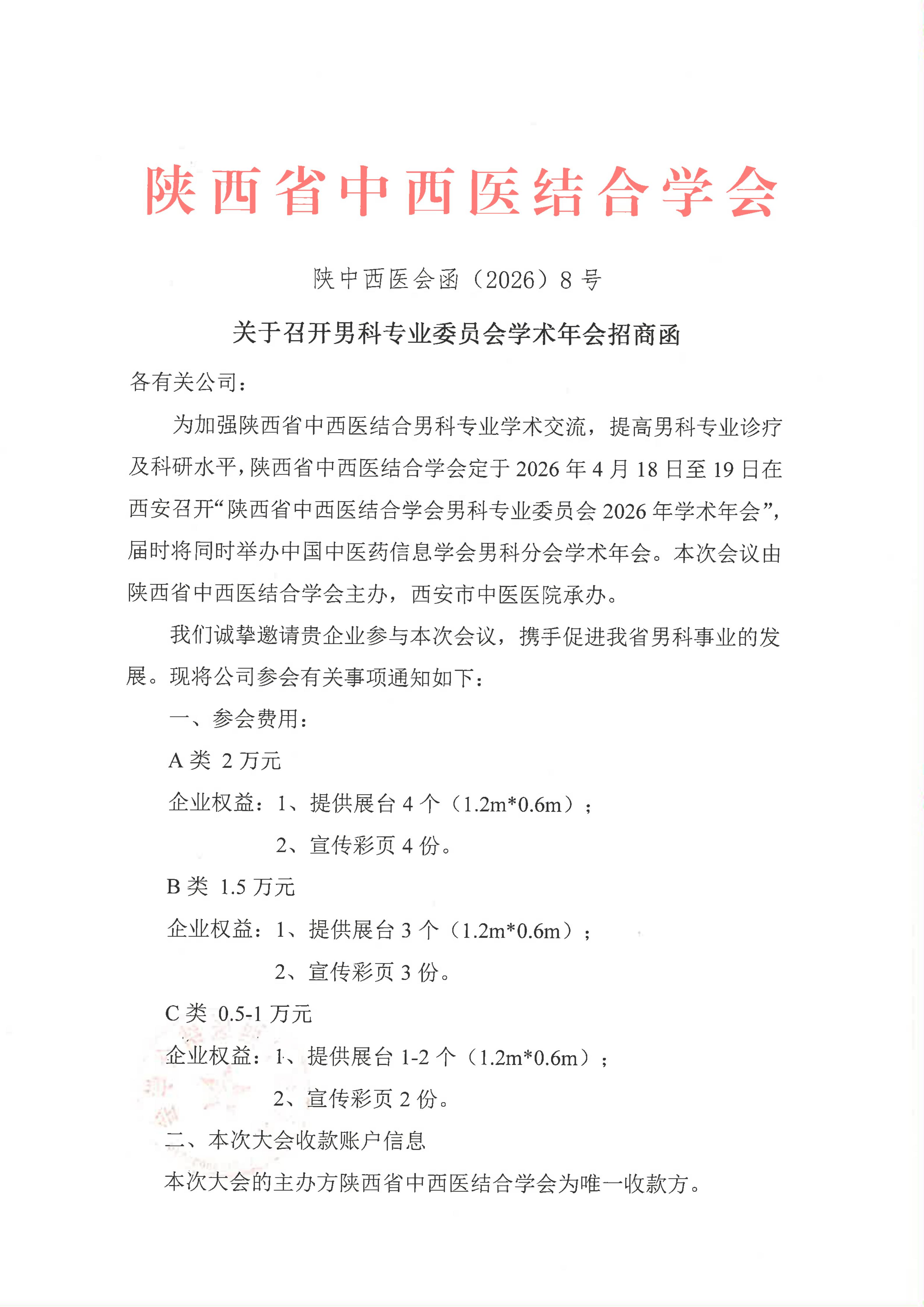 关于召开男科专业委员会学术年会招商函