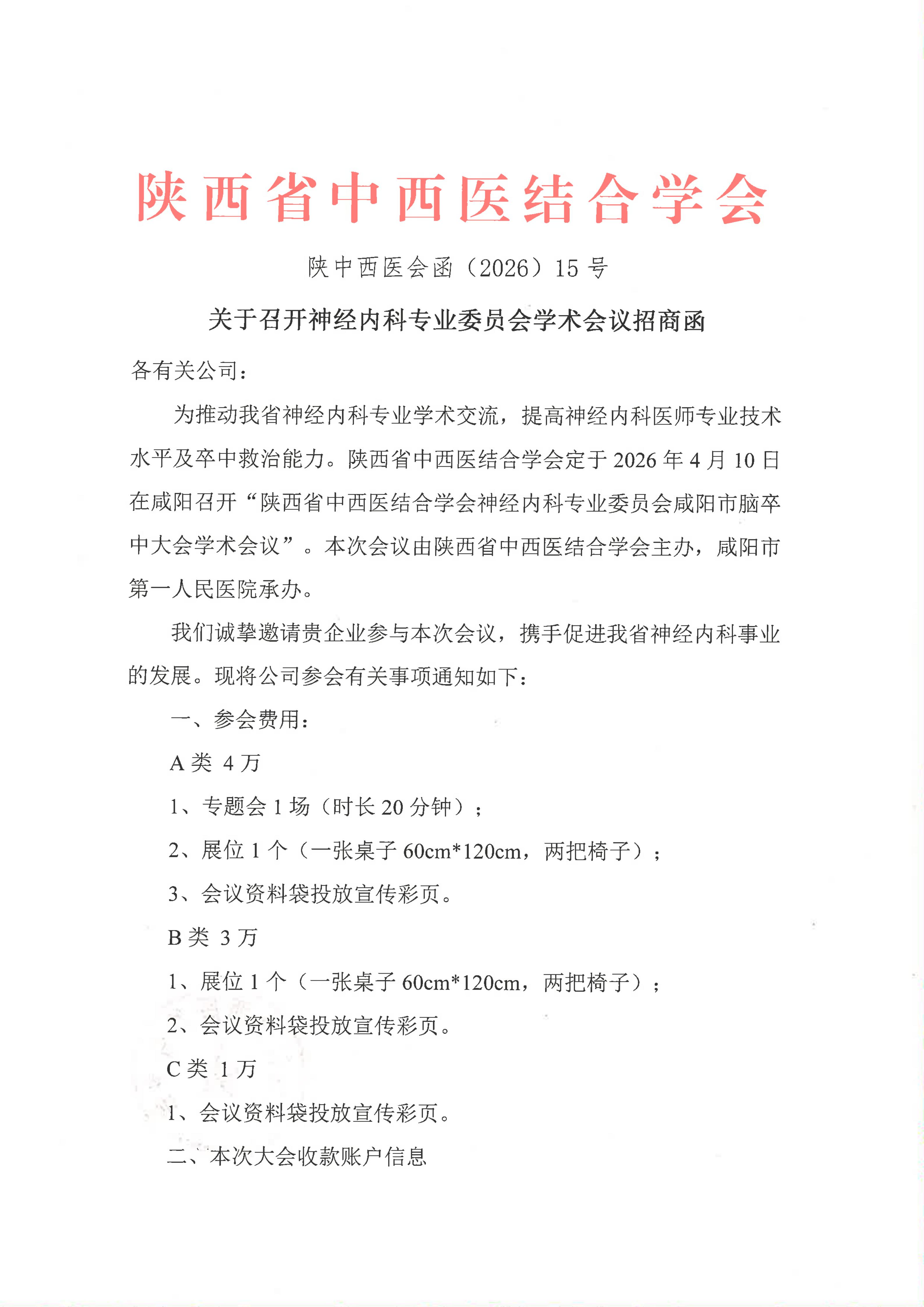 关于召开神经内科专业委员会学术会议招商函