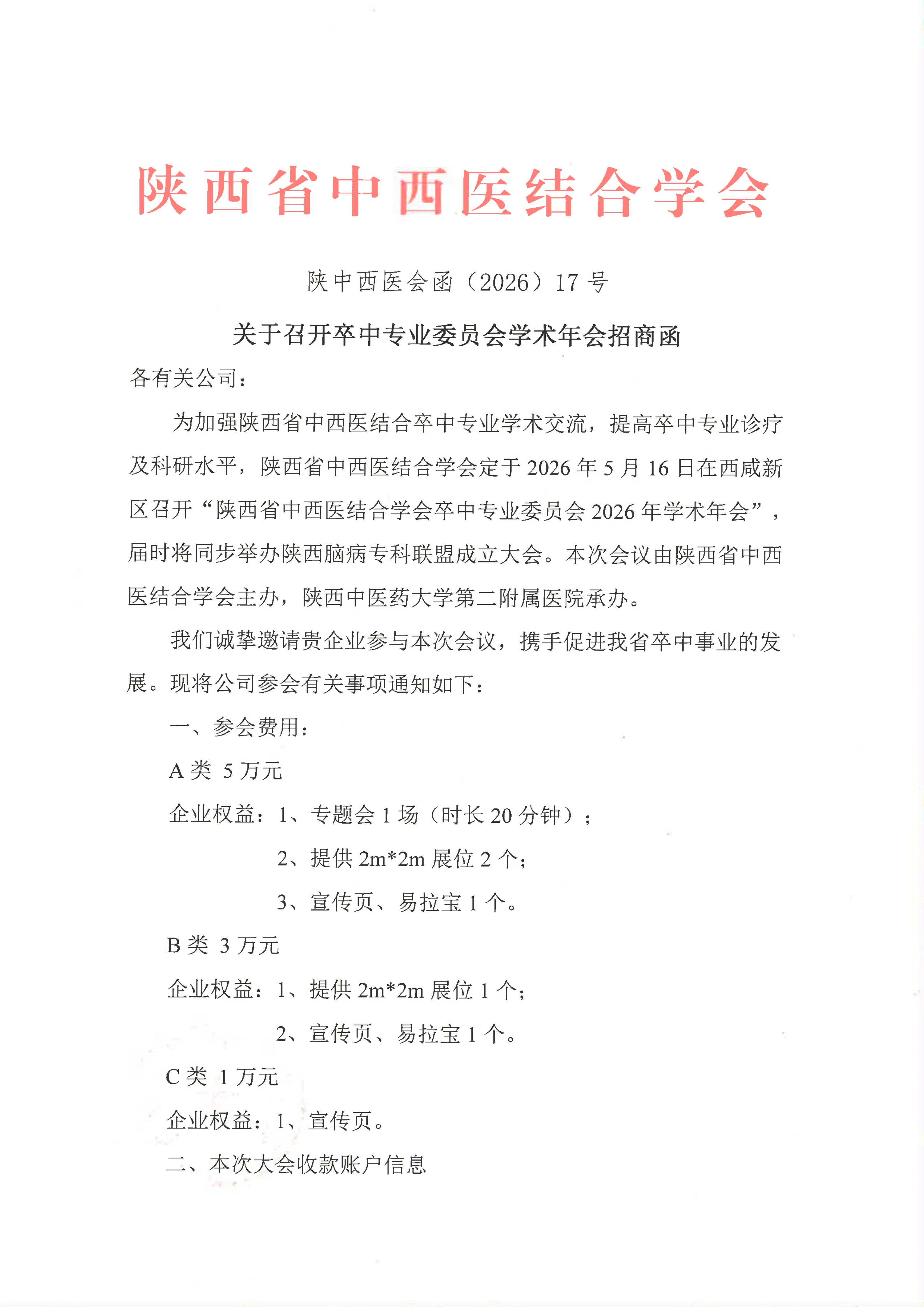 关于召开卒中专业委员会学术年会招商函