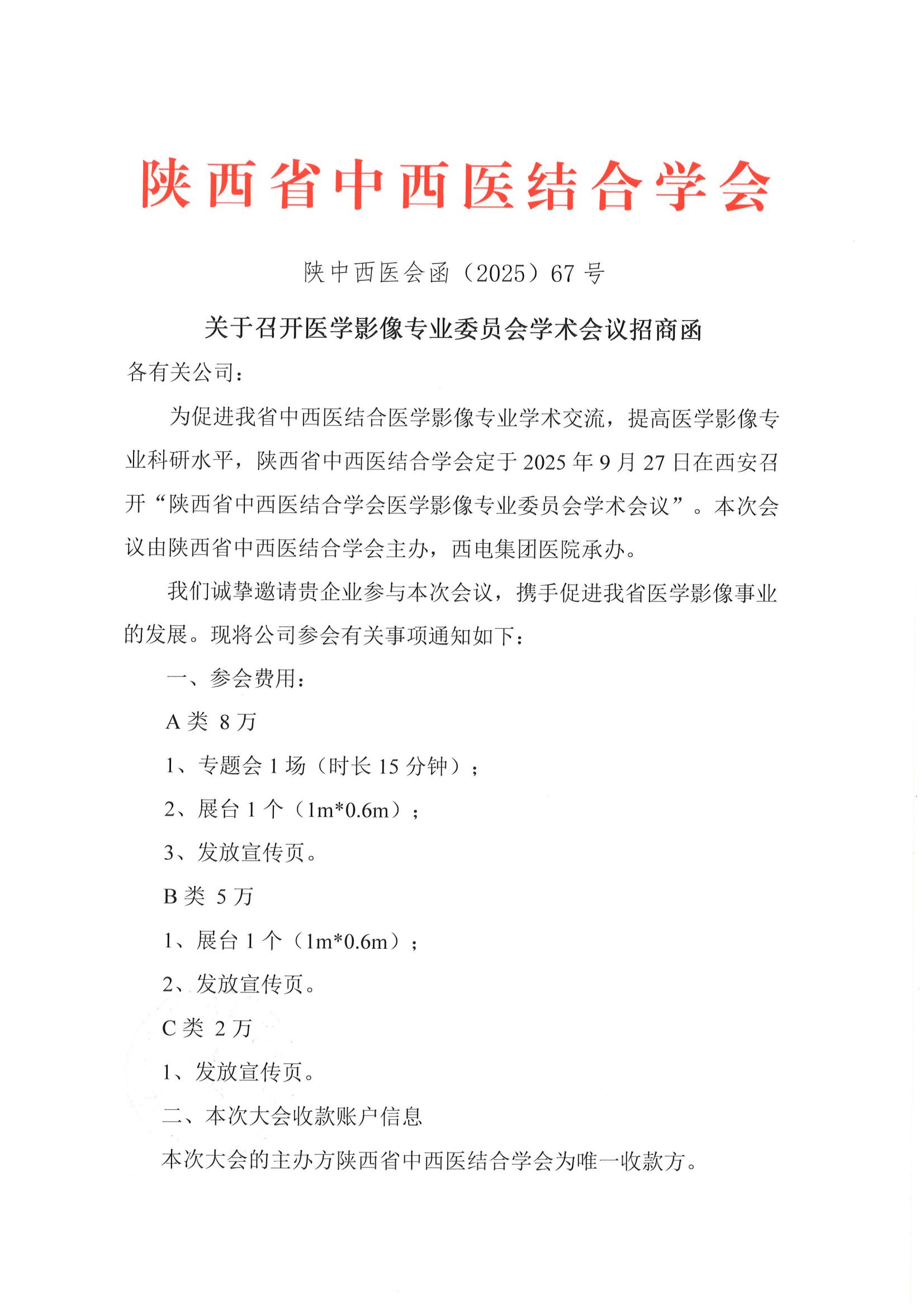 关于召开医学影像专业委员会学术会议招商函