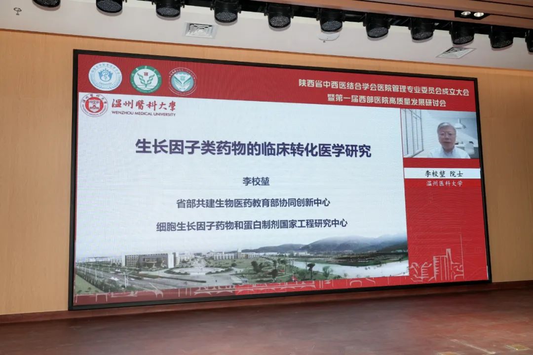 图3:李校堃教授作《生长因子类药物的临床转化医学研究》主题报告 两位院士分享的精彩的主题报告内容引发在座专家们的激烈反响,大家纷纷表示这是一场难得的学术盛宴,很有借鉴意义。之后,大会进入第二阶段,由西北大学附属医院·西安市第三医院副院长钱露教授主持。中日联谊医院副院长顾锐教授作了题为《应用DRG加强医疗质量管理》的主题报告,他核心阐述了DRG的有效应用对于倒逼医疗质量的提升,促进整体管理水平提升的重要意义。西安医学院第一附属医院、第一临床医学院党委书记闫红林教授则以《提升运营管理 助力医院高质量发展》为主题紧贴医院实际,系统分析了医院运营管理的内外部环境及难点、痛点,指出如何以三级公立医院绩效考核为抓手,从推进精细化管理、有效控制运营成本、优化诊疗流程、改善服务和提高职工幸福感等方面协同运营机制,形成“组合拳”,产生了较好的聚合效应。
