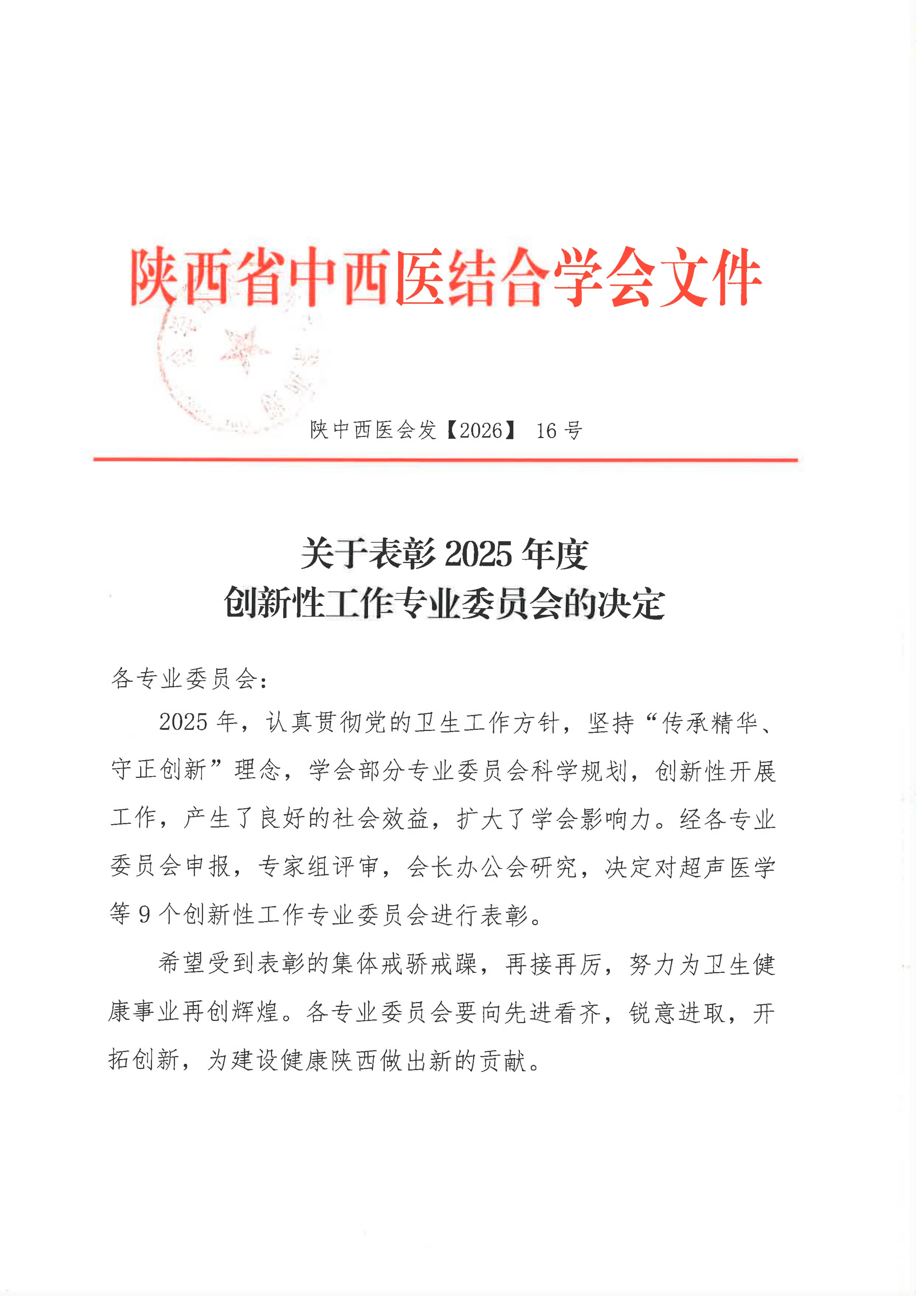 关于表彰2025年度创新性工作专业委员会的决定