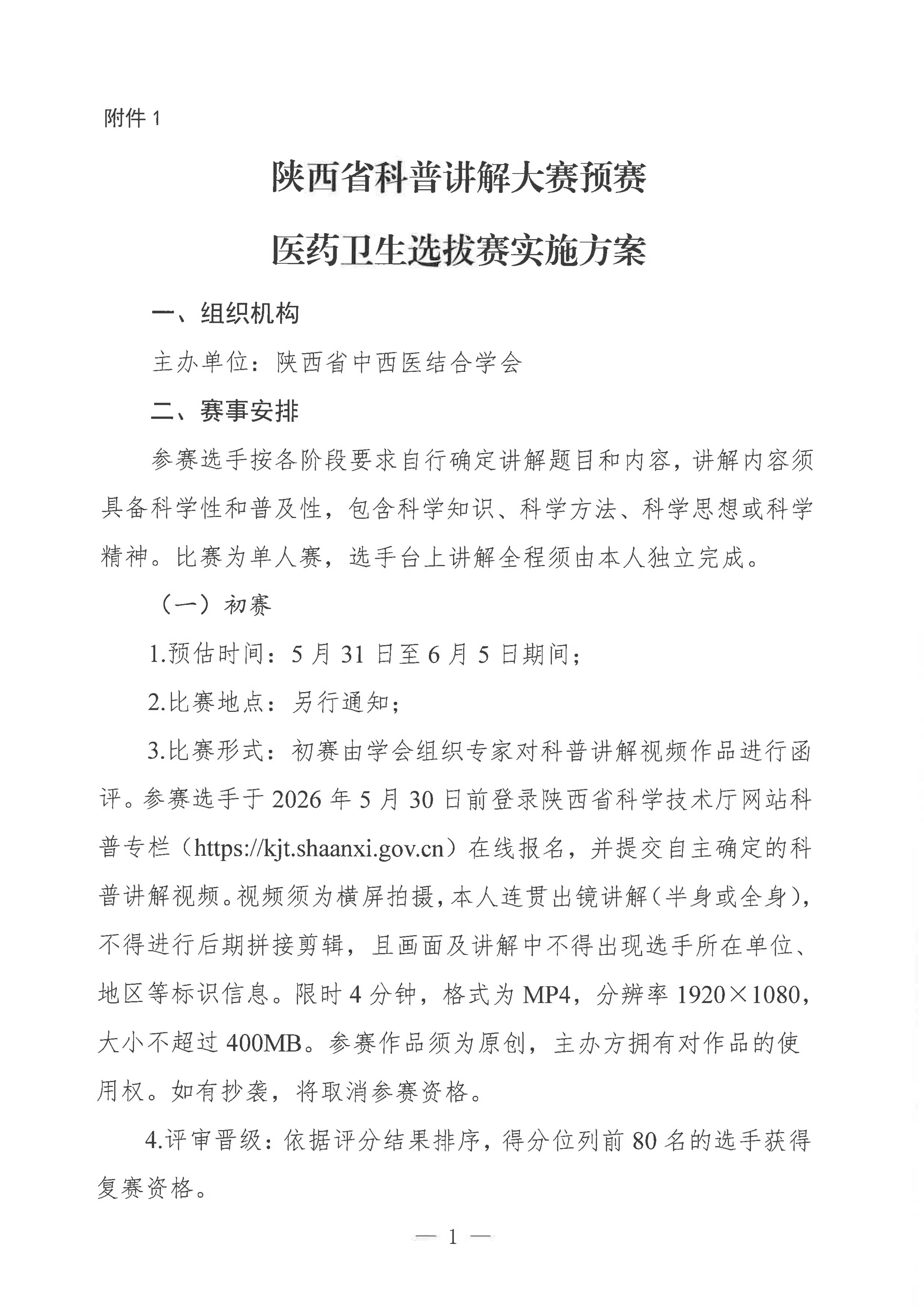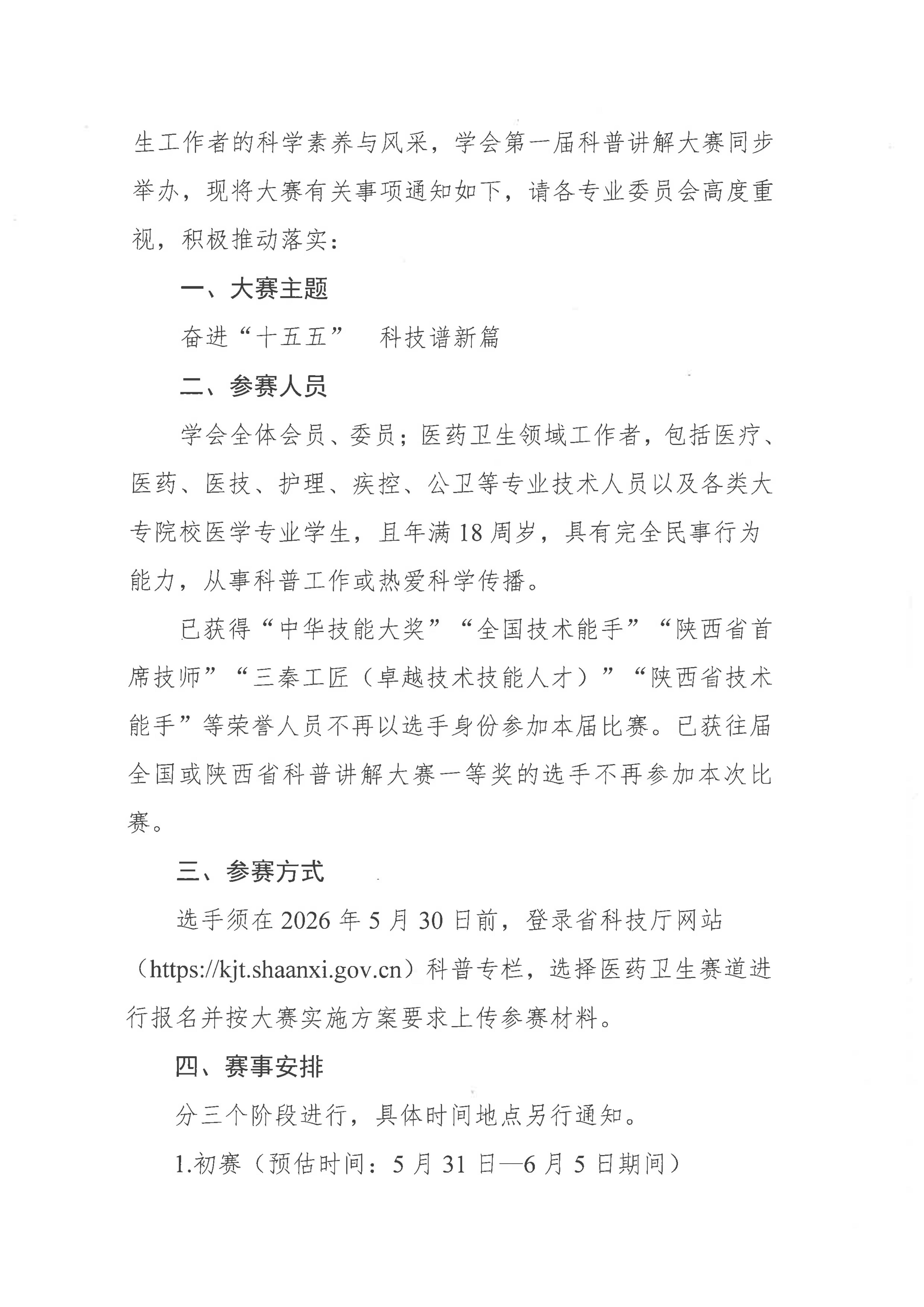 关于举办第一届科普讲解大赛暨陕西省科普讲解大赛预赛医药卫生选拔赛的通知