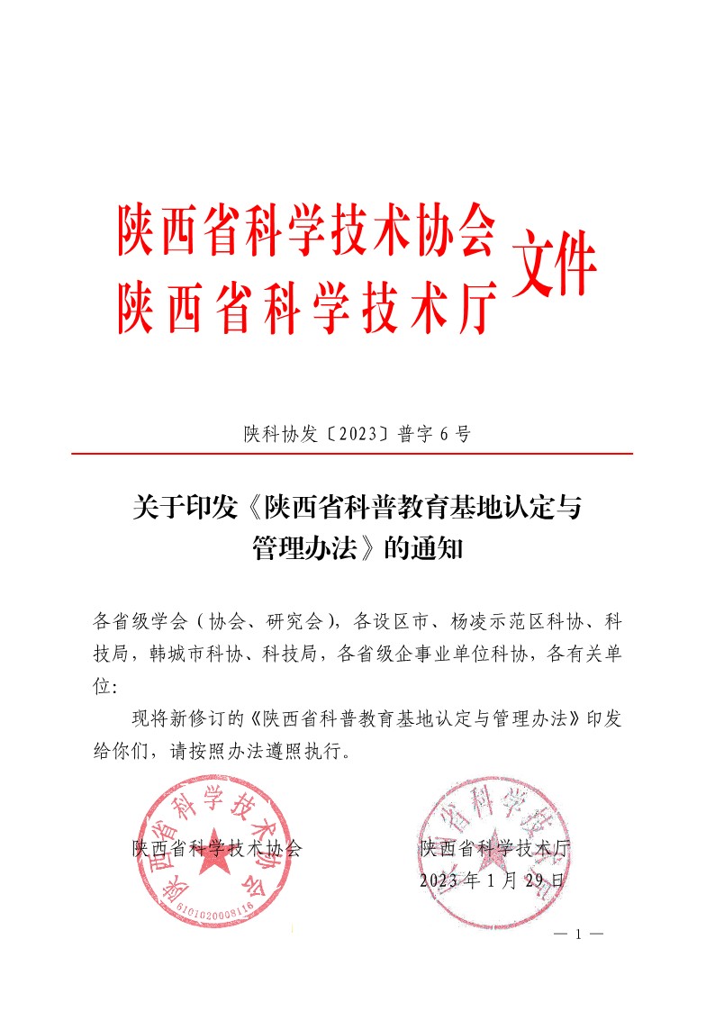 关于印发《陕西省科普教育基地认定与管理办法》的通知(普字6号