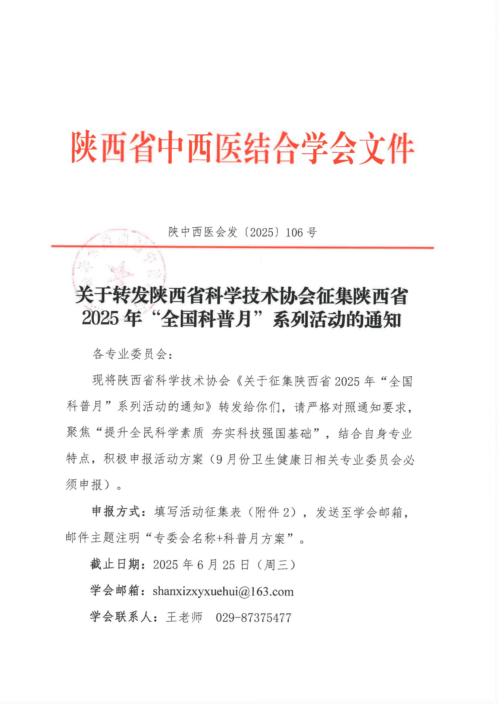 关于转发陕西省科学技术协会征集陕西省2025年“全国科普月”系列活动的通知