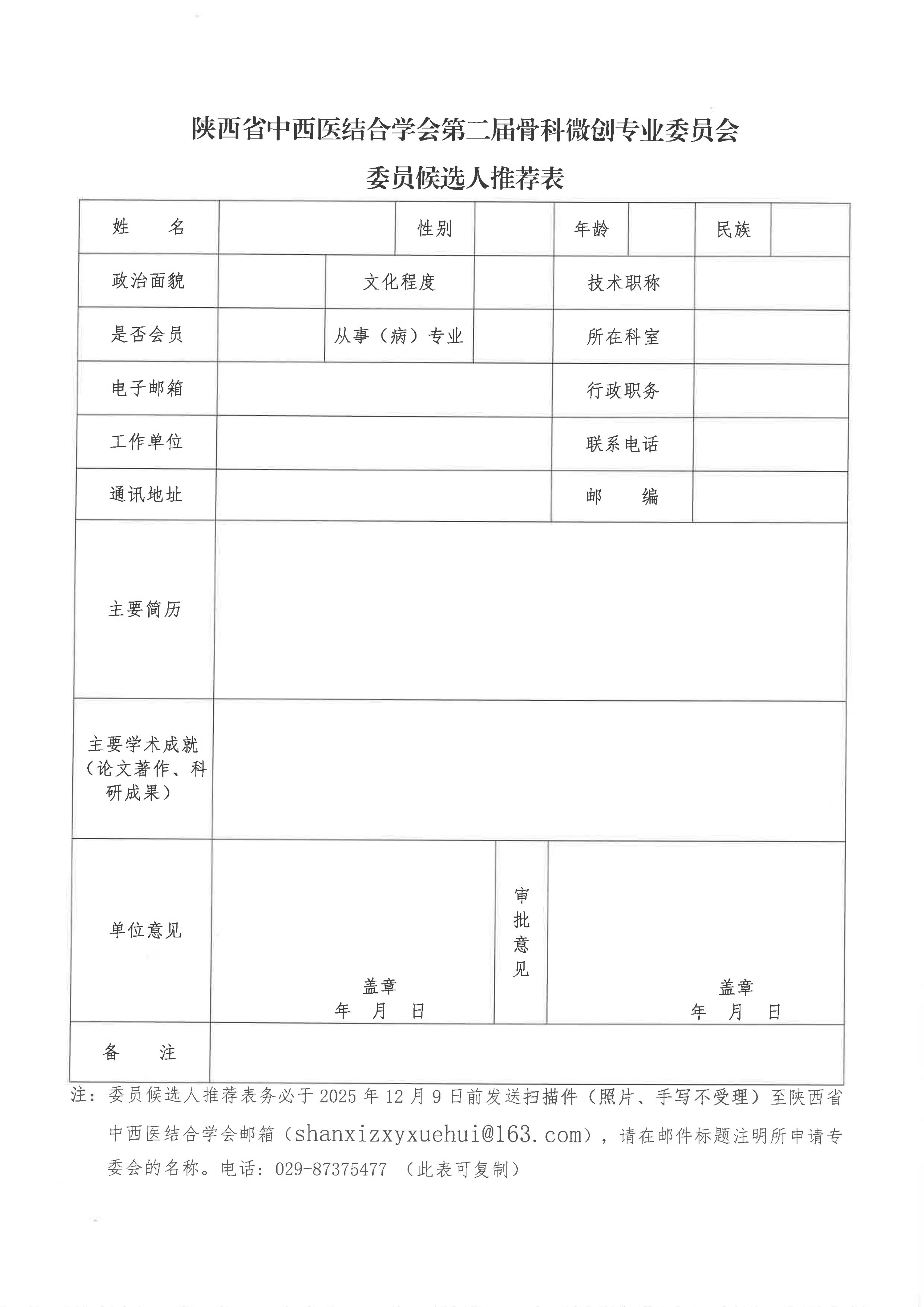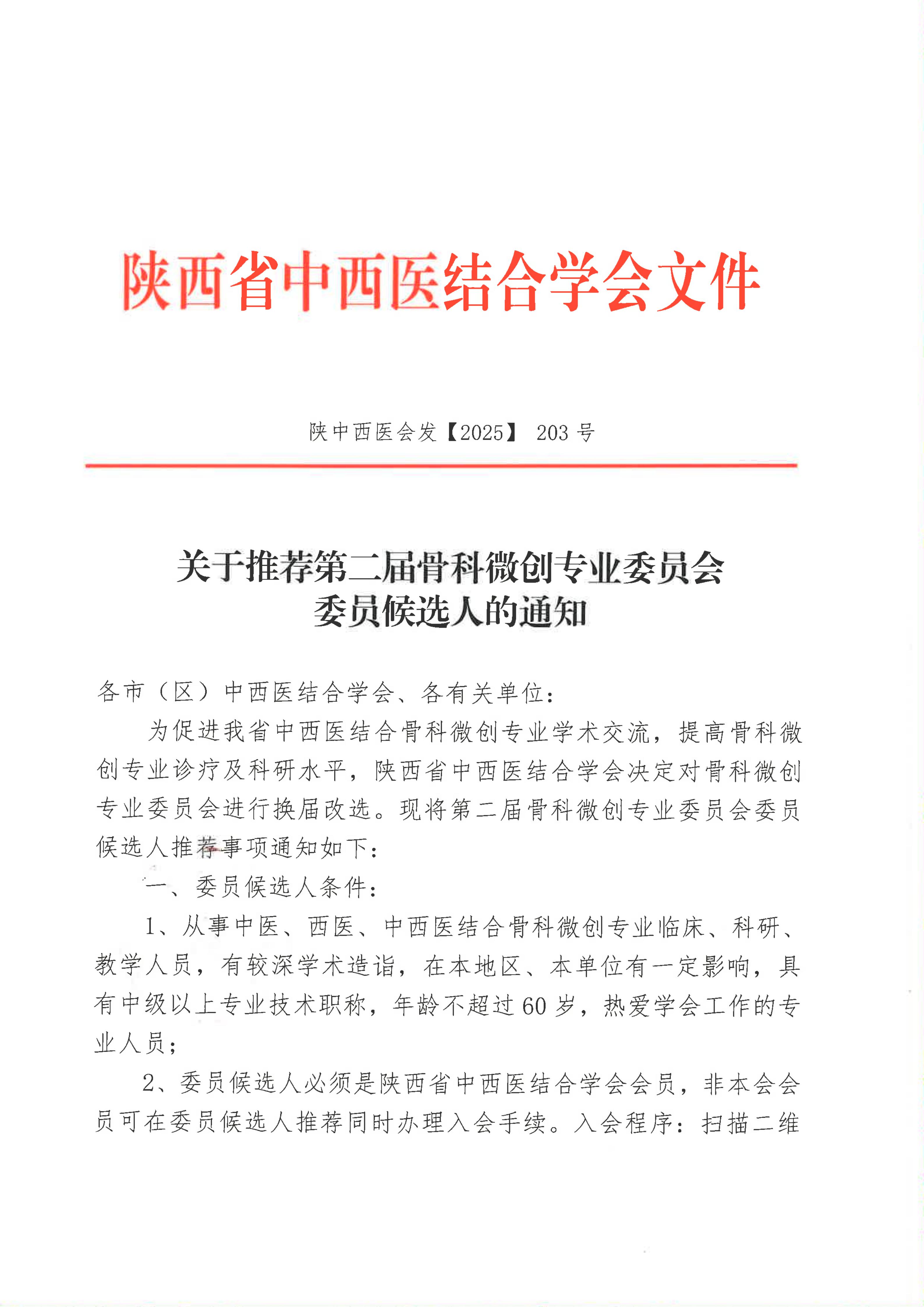关于推荐第二届骨科微创专业委员会委员候选人的通知