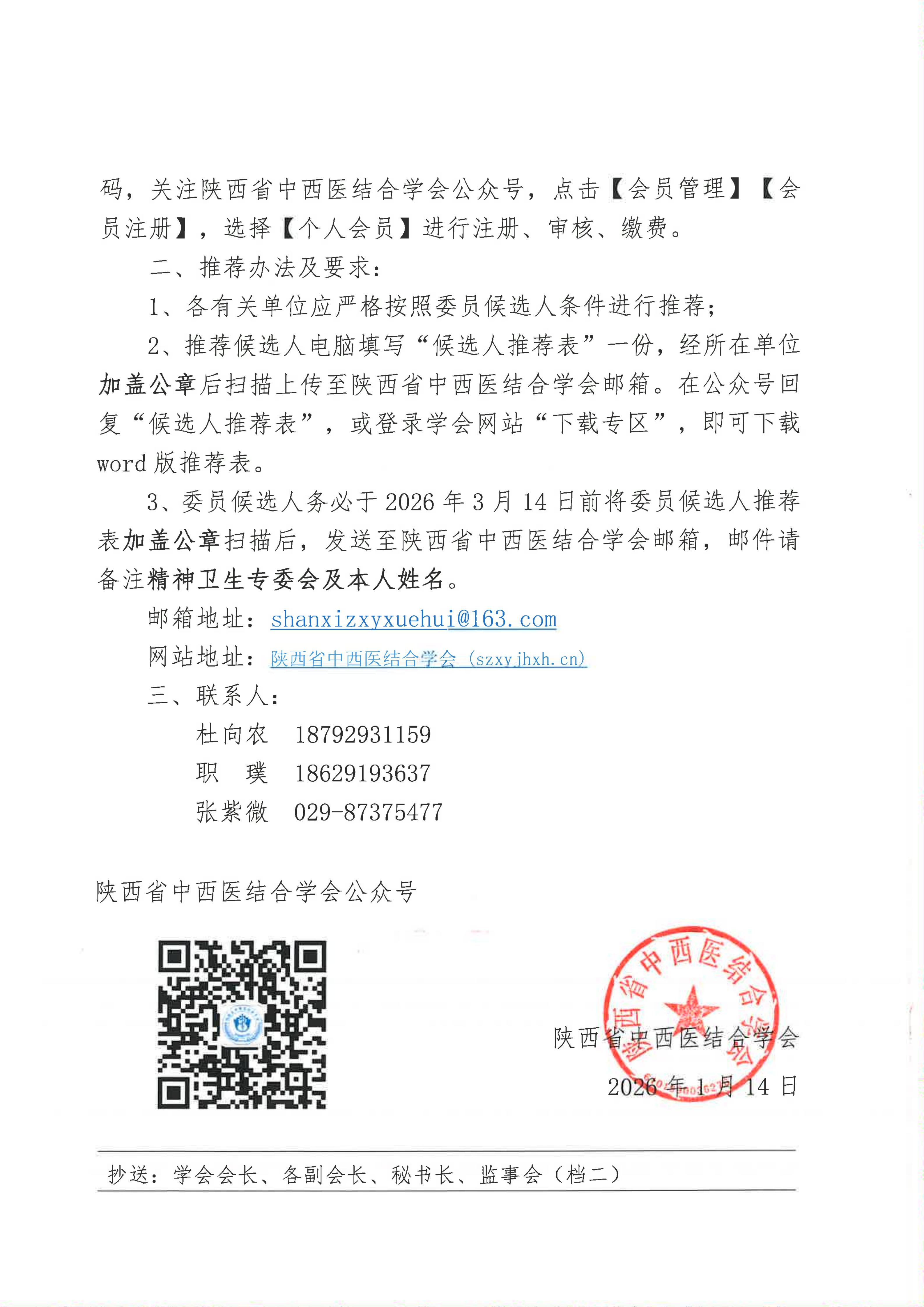 关于推荐第二届精神卫生专业委员会委员候选人的通知