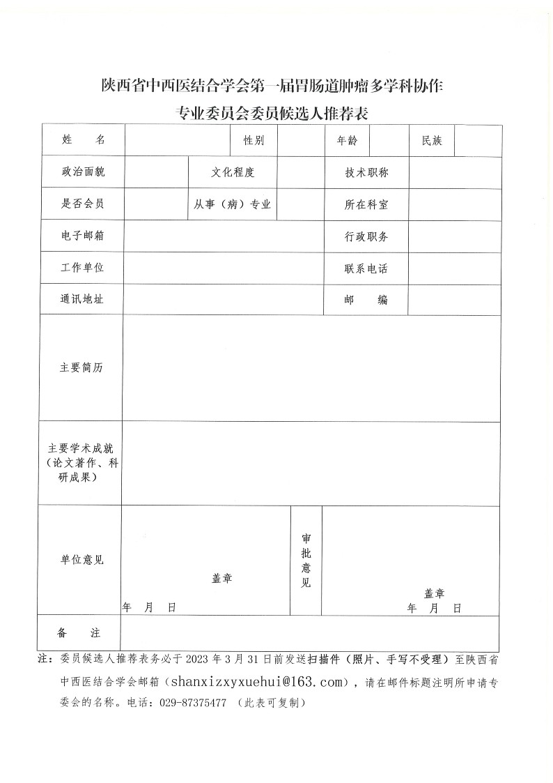 关于推荐第一届胃肠道肿瘤多学科协作专委会委员候选人的通知