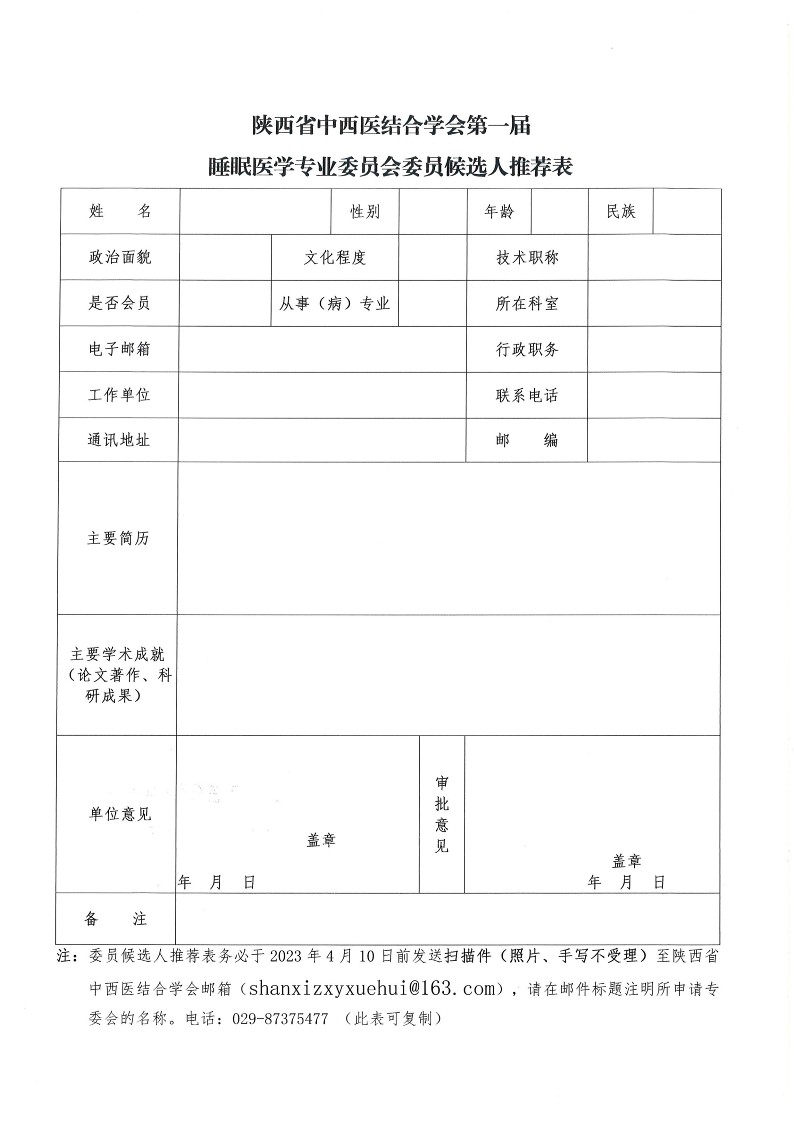 关于推荐第一届睡眠医学专委会委员候选人的通知