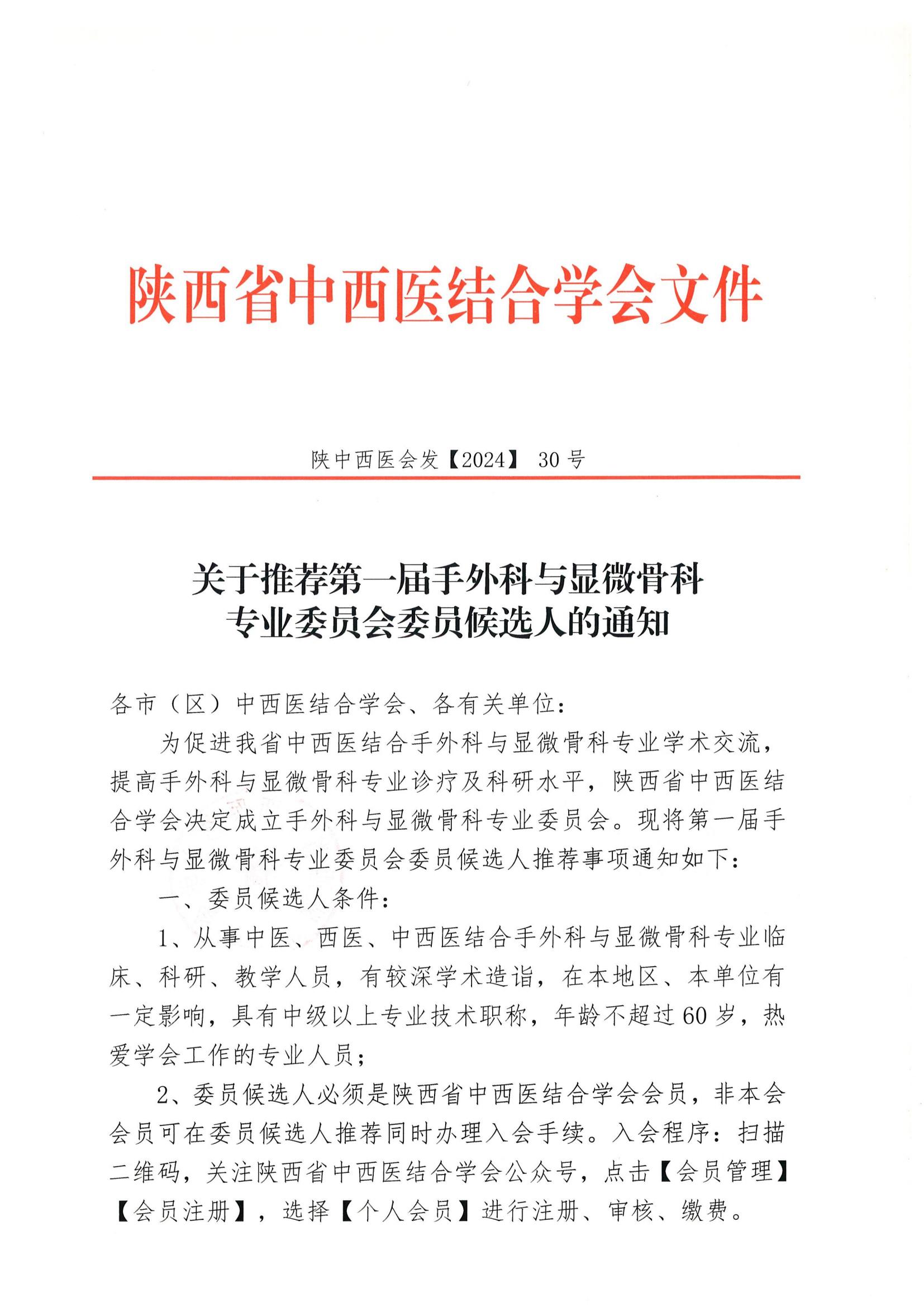 关于推荐第一届手外科与显微骨科专业委员会委员候选人的通知