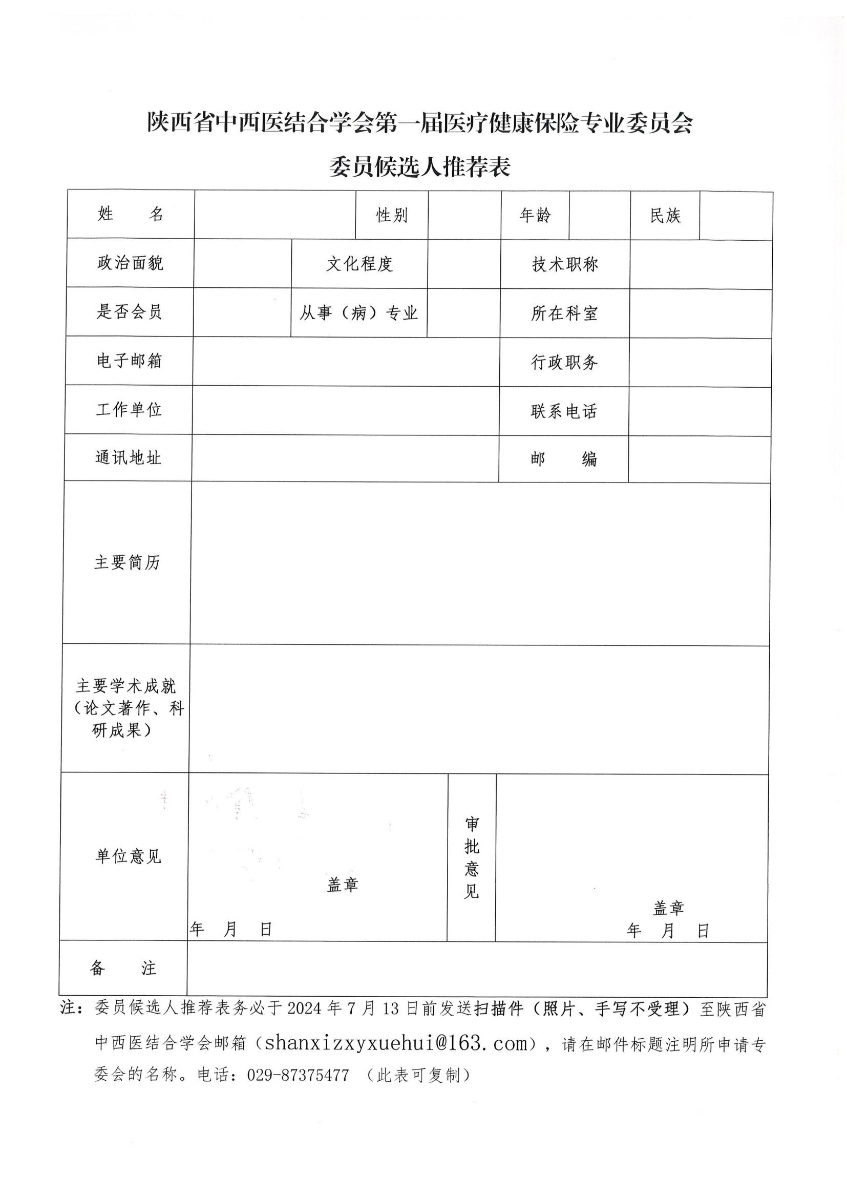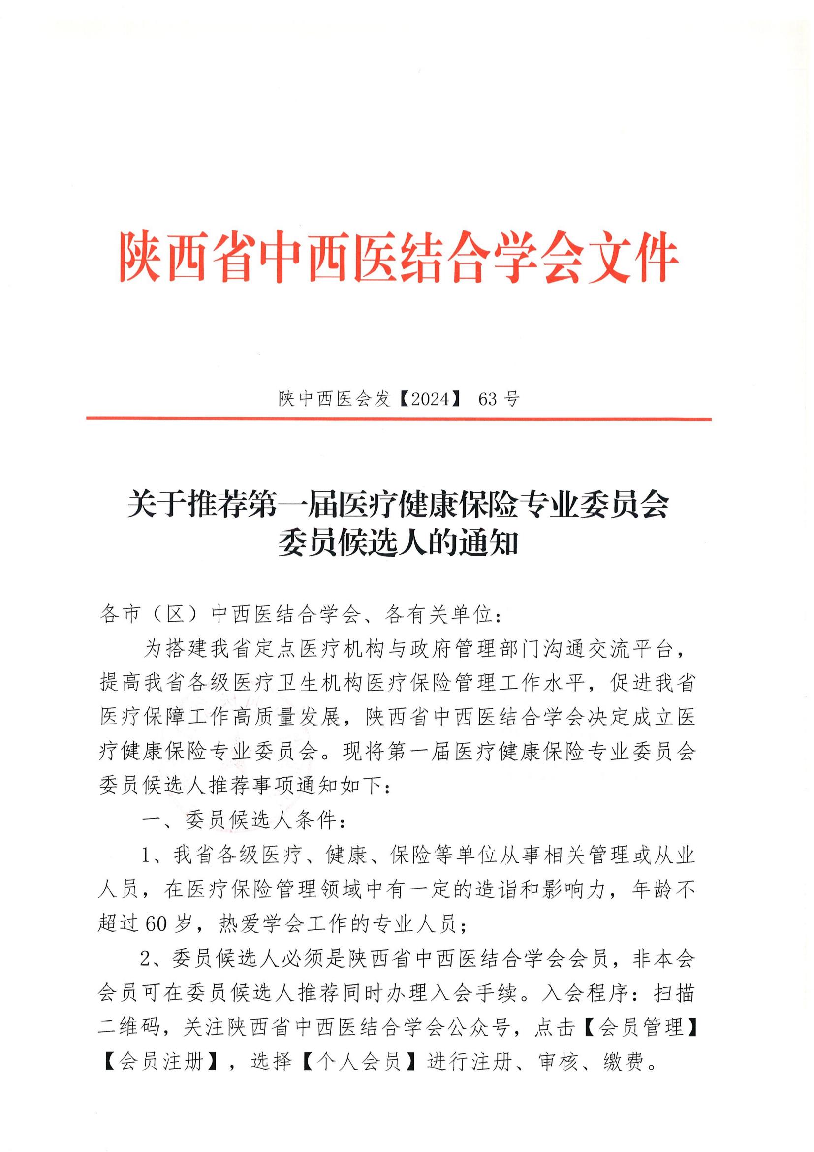 关于推荐第一届医疗健康保险专业委员会委员候选人的通知