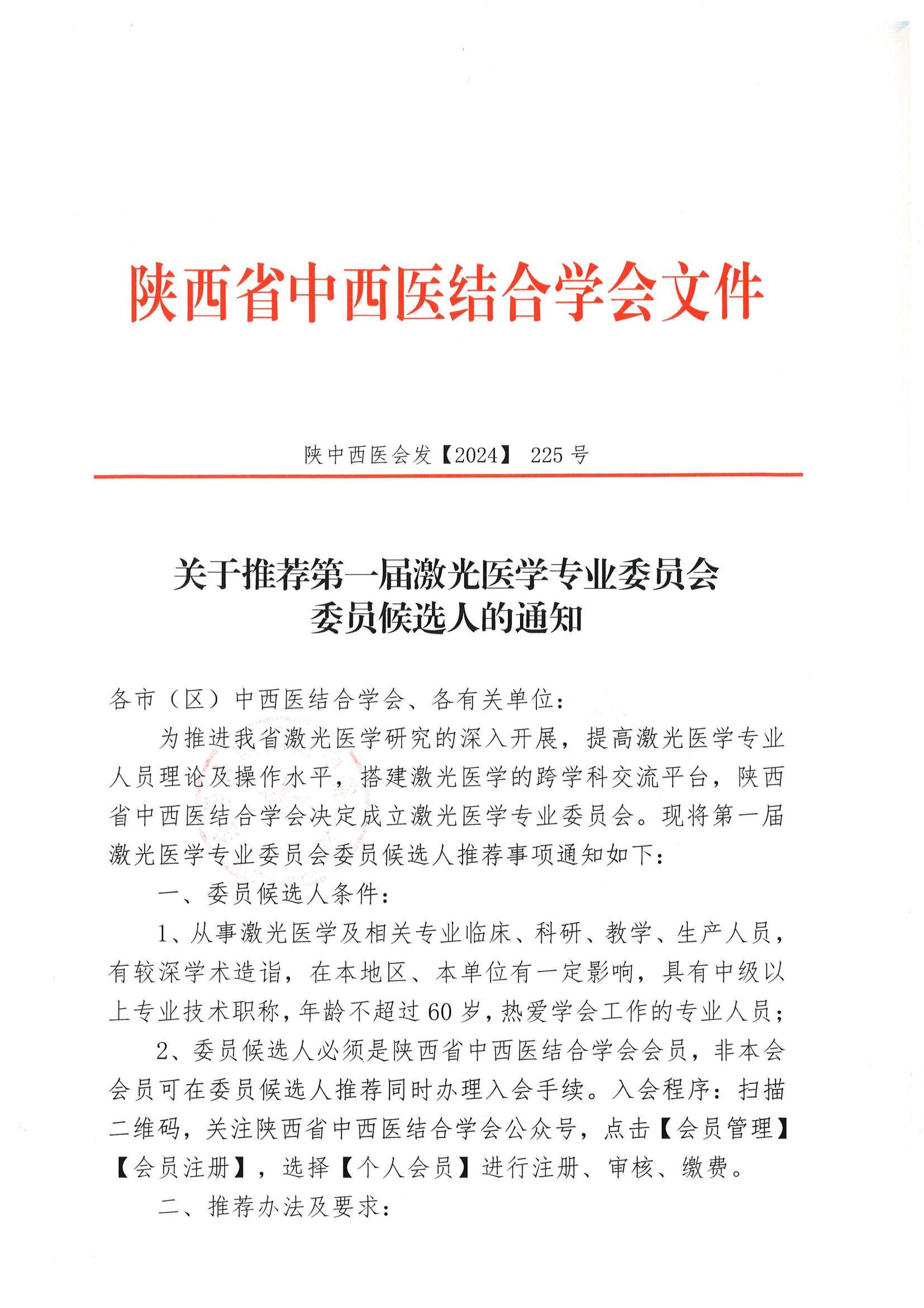 关于推荐第一届激光医学专业委员会委员候选人的通知