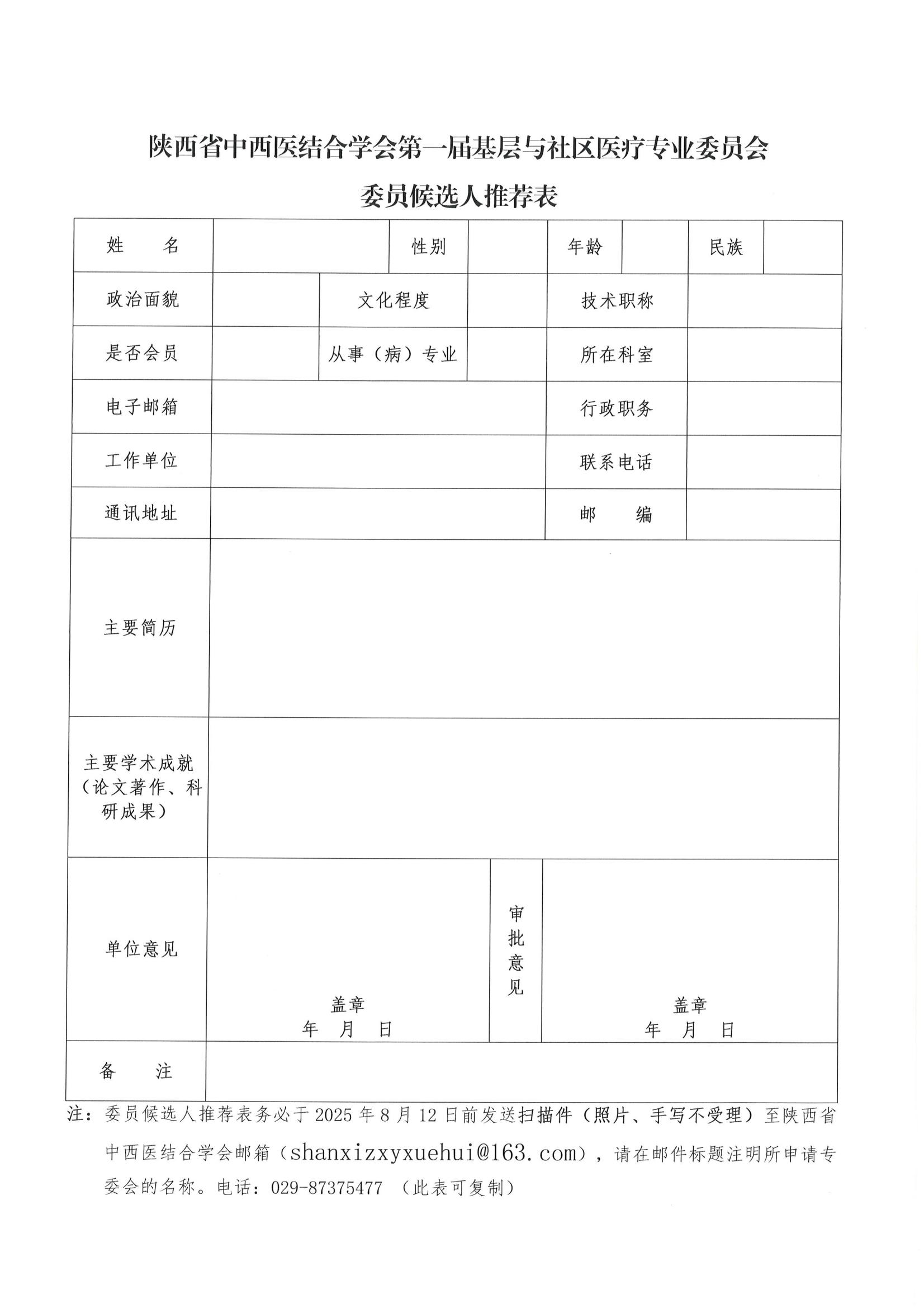 关于推荐第一届基层与社区医疗专业委员会委员候选人的通知