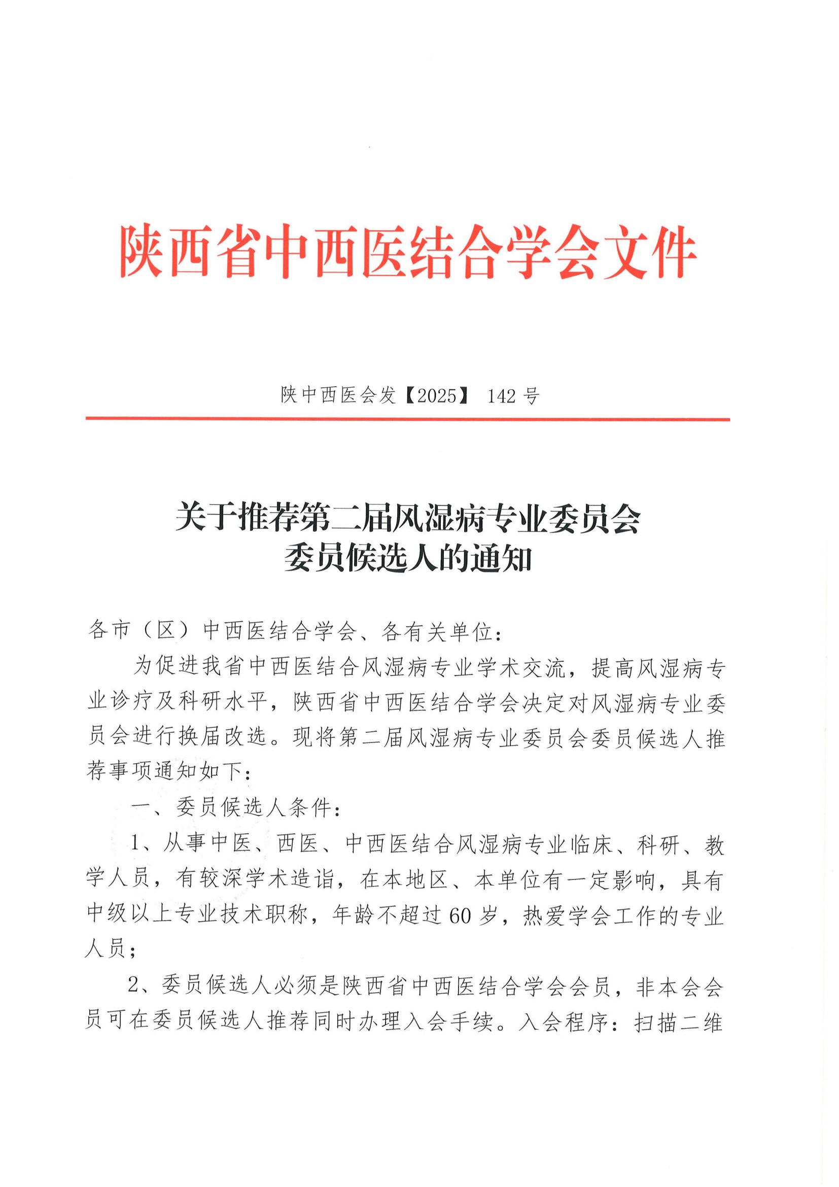 关于推荐第二届风湿病专业委员会委员候选人的通知